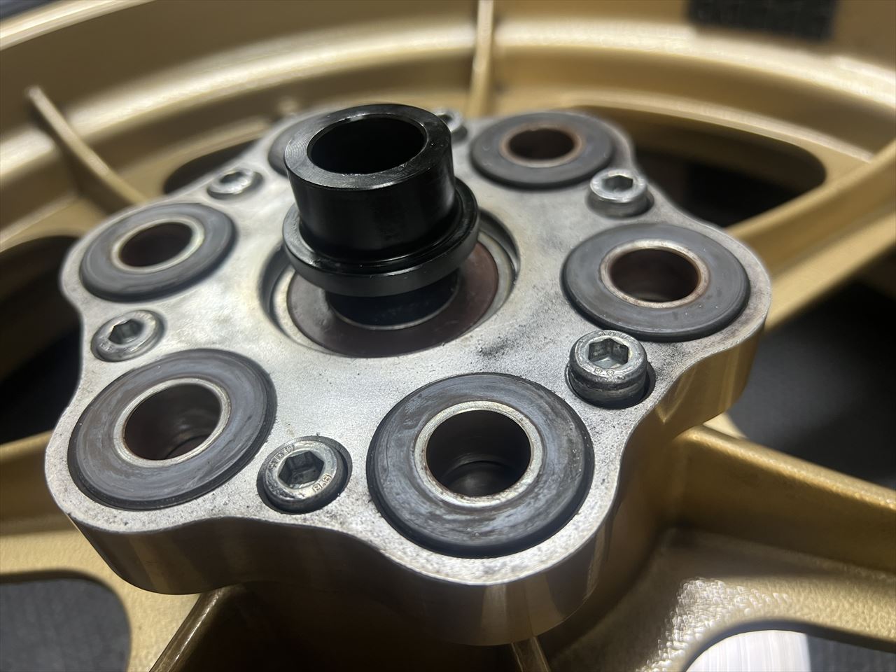 ハウジングをハブと合わせてみますが、やや隙間ができますね。ディスタンスカラーに当たるようです。