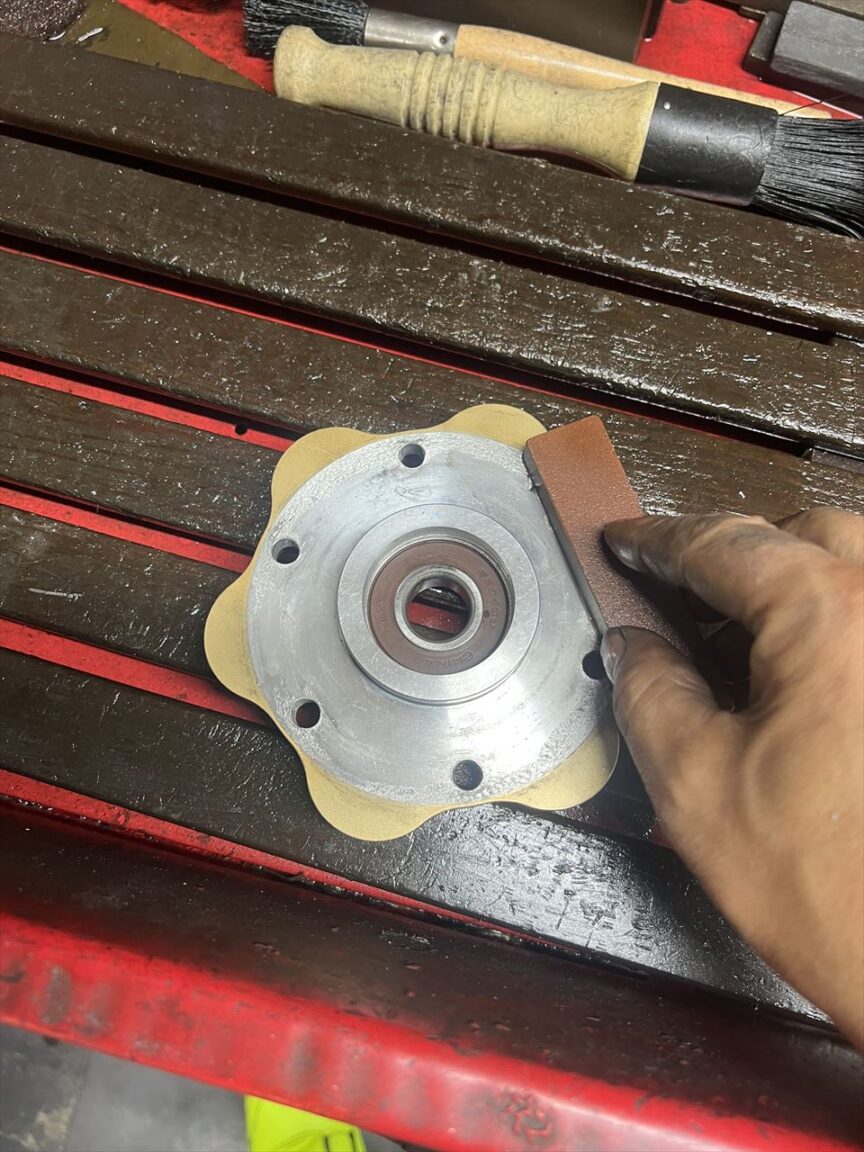オイルストーンで面を修正します。