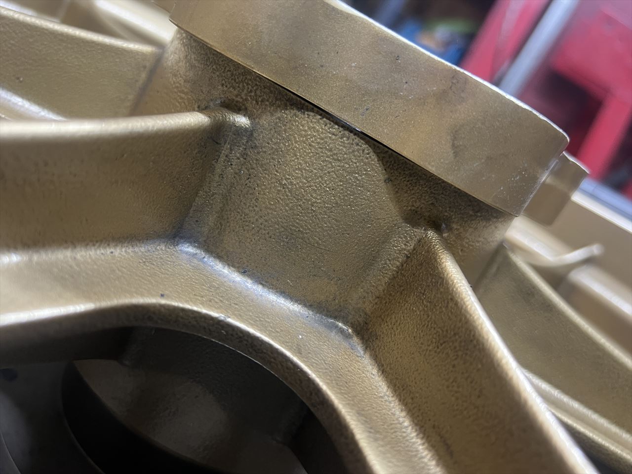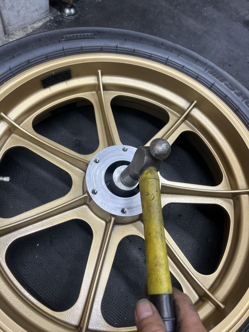 ガタがあるまま走行したので、叩かれて面が傷んでいますね。