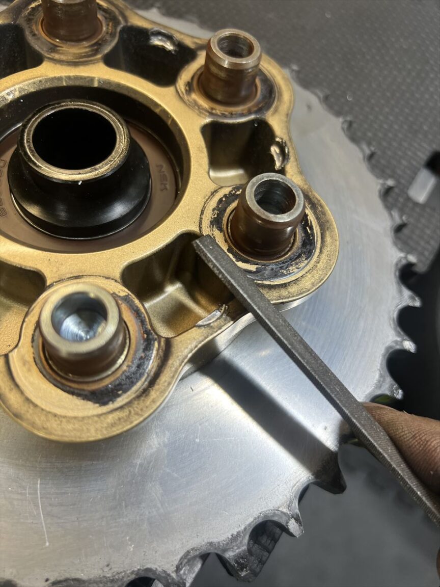 浮き出たボルトでバリが出たところをヤスリで修正します。