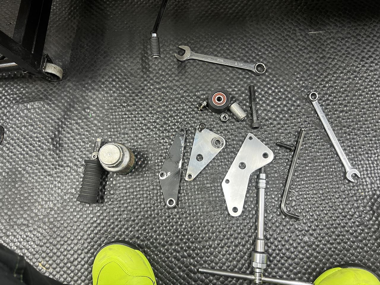 ワークスバックステップのプレートとガイドローラーのブラケットを一体化したものはこんな感じです。