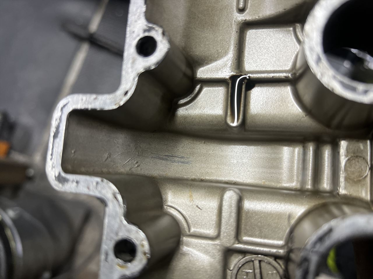 ヘッドカバー裏側には、カムチェーンが接触したような傷があります。現状はカムチェーンの弛みも無いので、過去に何かあったようです。