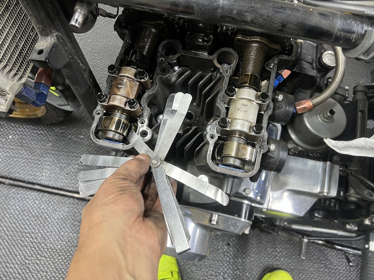 バルブクリアランスを計測します。広いところ、狭いところ、いろいろあり。