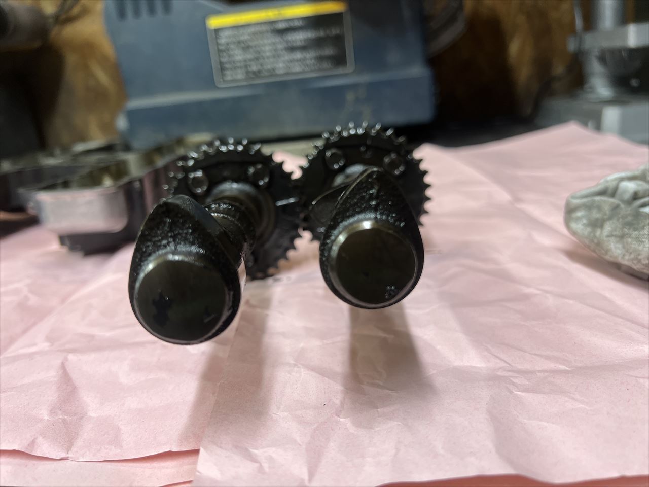 カムはよくある社外メーカーのブランク素材を使っているようですが、メーカー名などの印は無いようです。リフトは9.8ミリとステージ1クラス。ベースサークルが小さいので、ヘッドカバー裏側の十字の出っ張りには当たらなかったのでしょう。