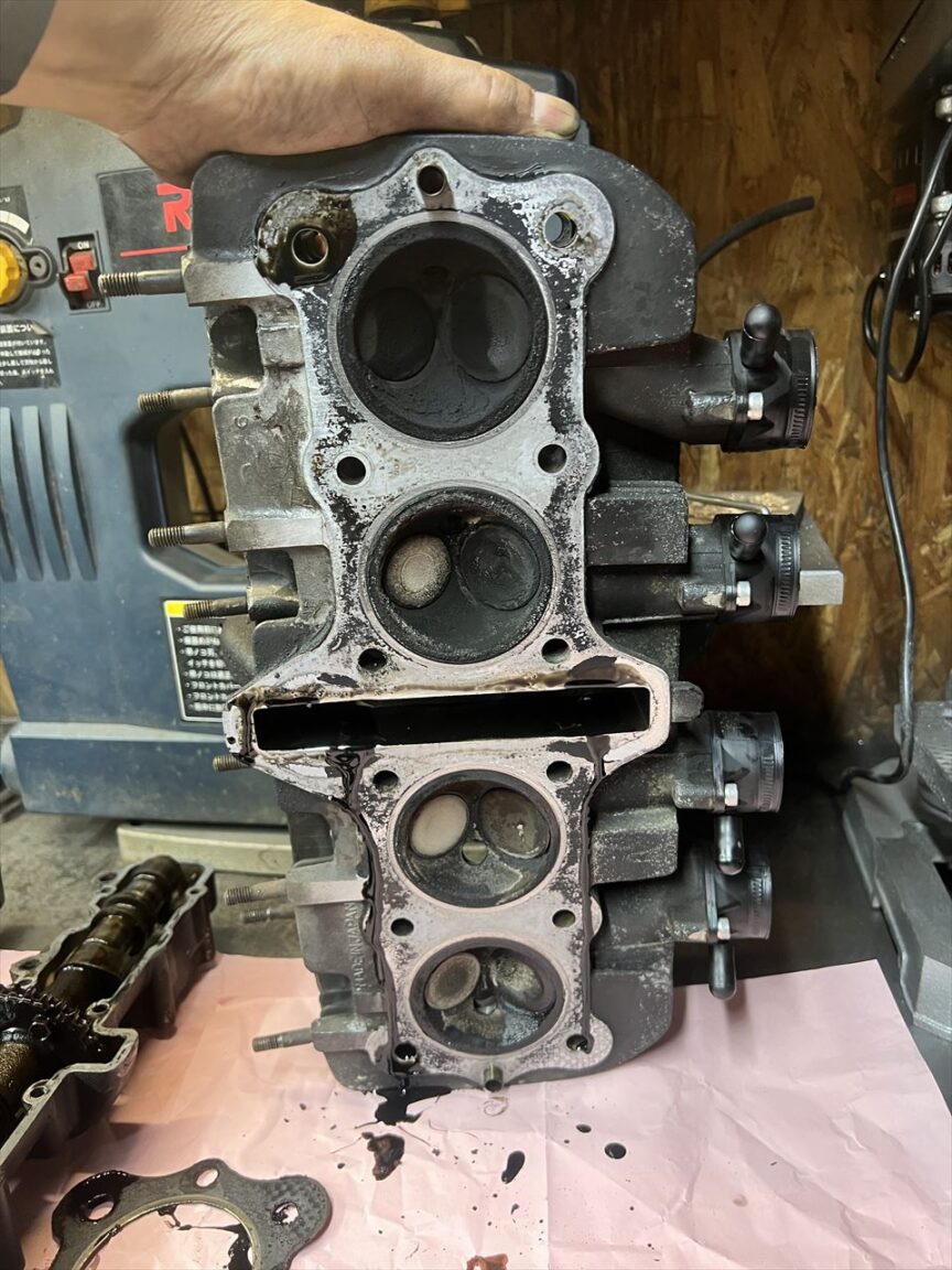 ヘッドガスケットは左右一体型でした。ワイセコなどでよく見るタイプです。