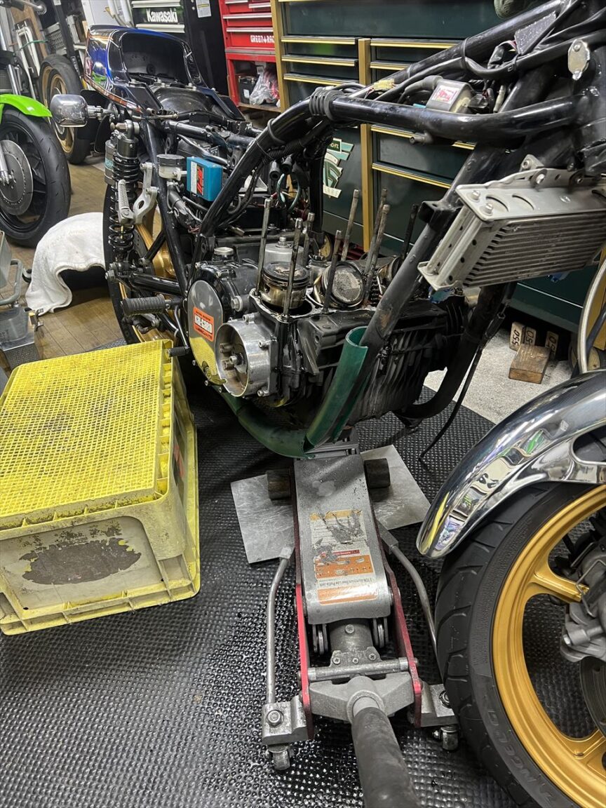 入手当初からお越しいただいていましたが、いままで前後足回りの変更を中心に進め、今回は1年半ほどお待たせしていたエンジンオーバーホールを開始します。当初からのチェックでエンジン本体は調子がいいものの、クラッチミート時の振動や異音が少し感じられていたのでハウジングに何か異常があると思われます。