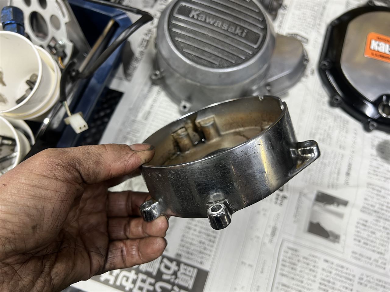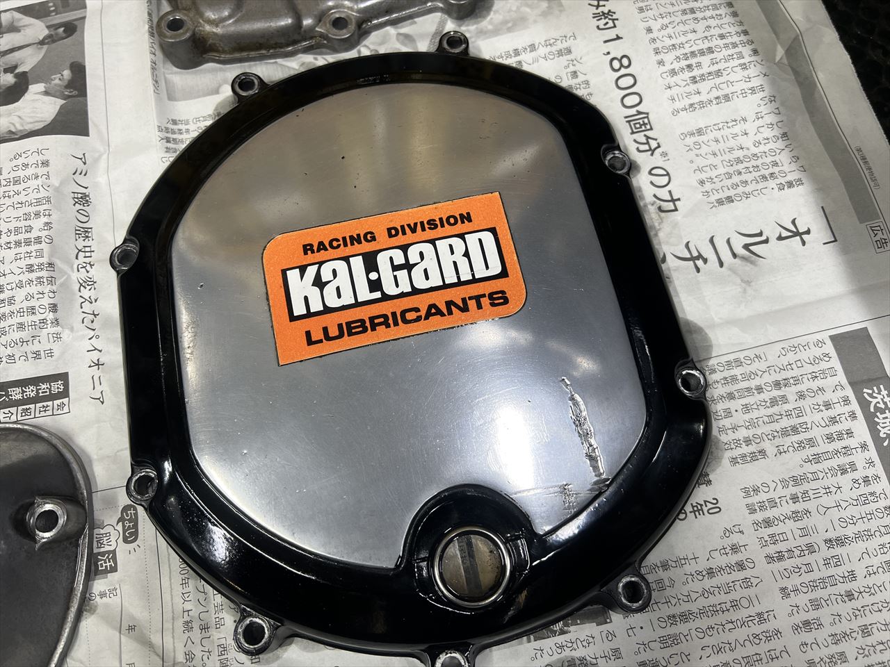 RHエンジンカバーはメッキ品なのでこちらも交換する予定。