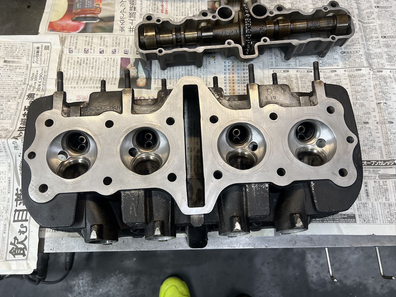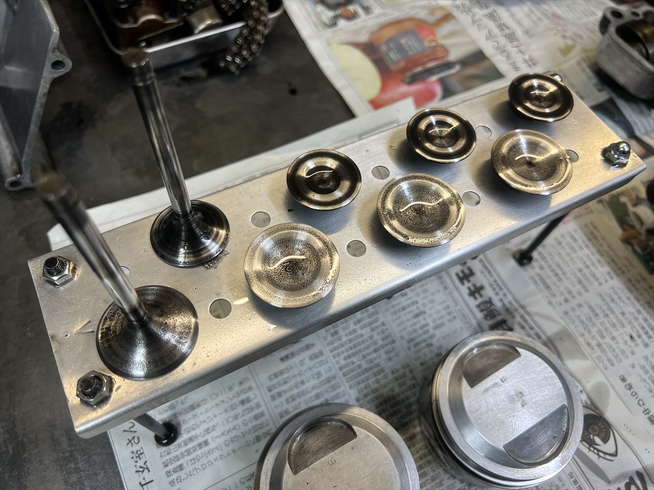 バルブも研磨しました。純正流用のビッグバルブのようですが、詳細は不明です。フェースの摩耗も少なく良好です。