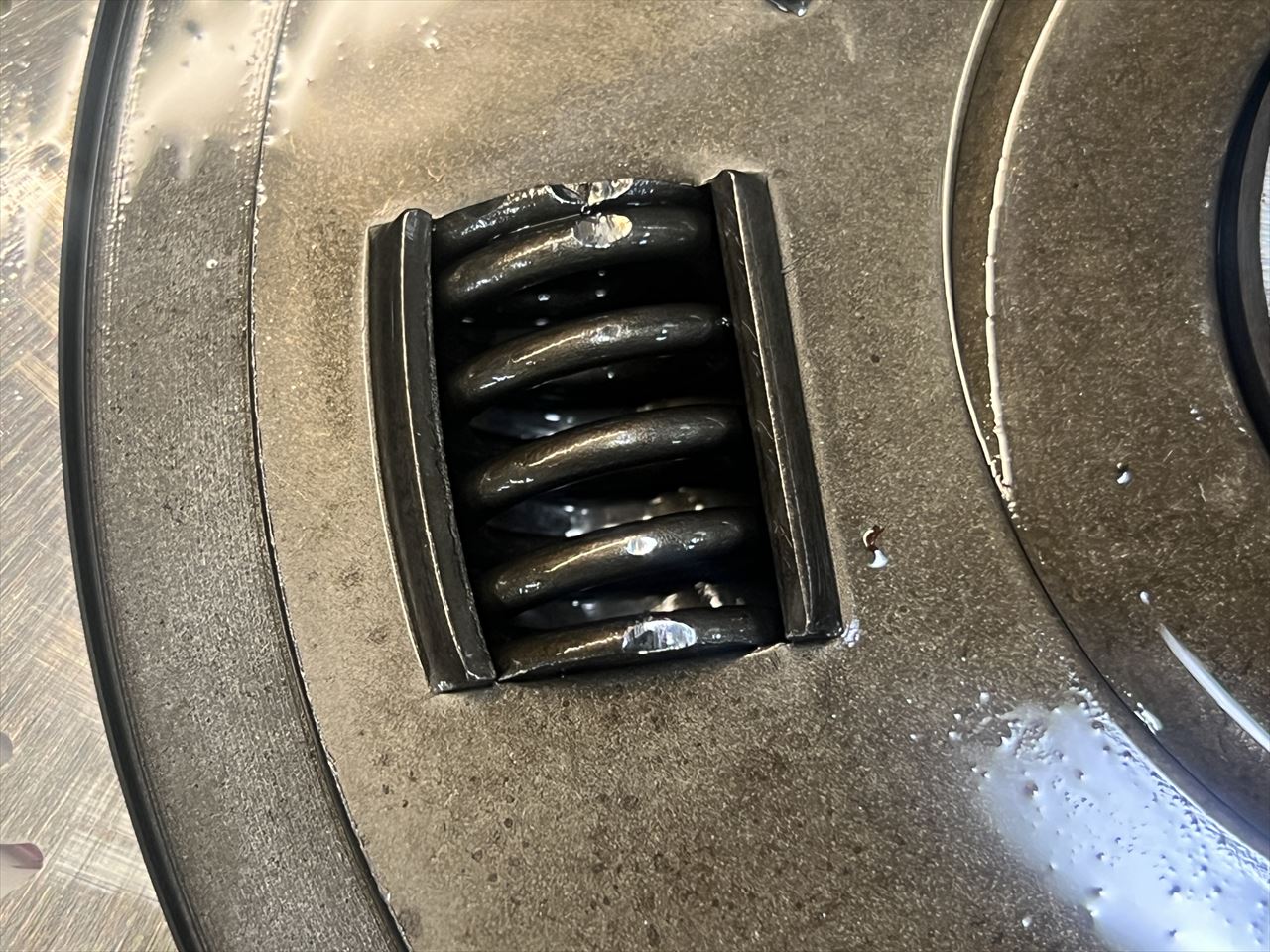 裏から見える6本のダンパースプリングのうち、3本に大きな削れがあり、内1本は緩くなって中で遊んでいました。