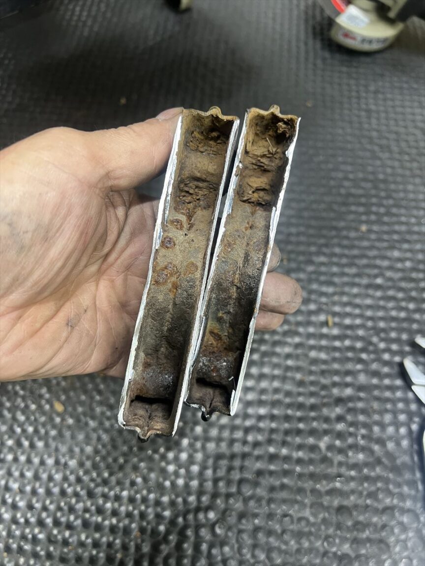 ブラケットを削除すると中からサビの塊がかなり出てきました。