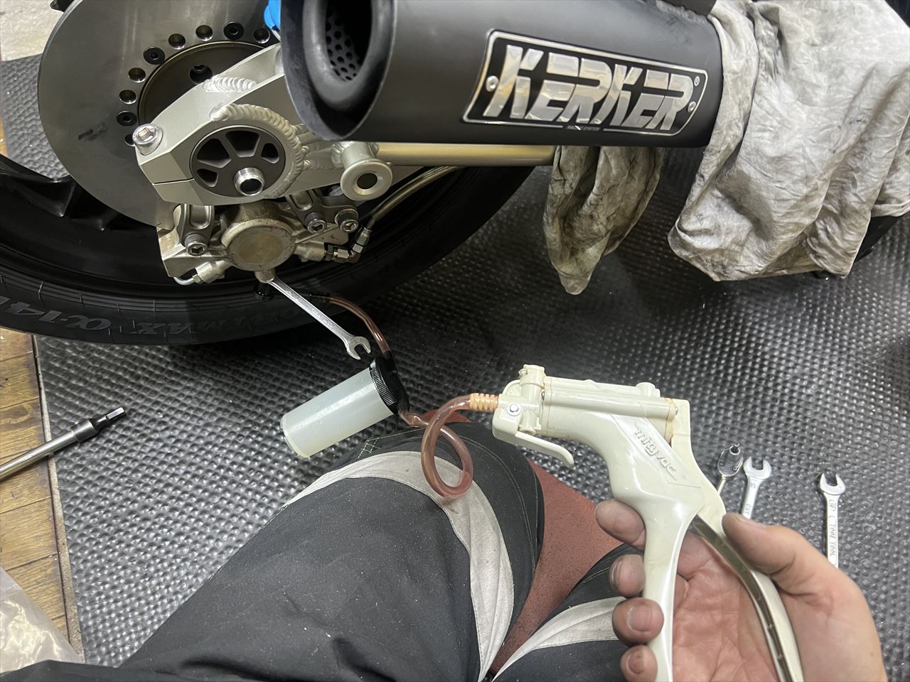 キャリパーを外してブリーザーを上向きにしてエア抜きします。