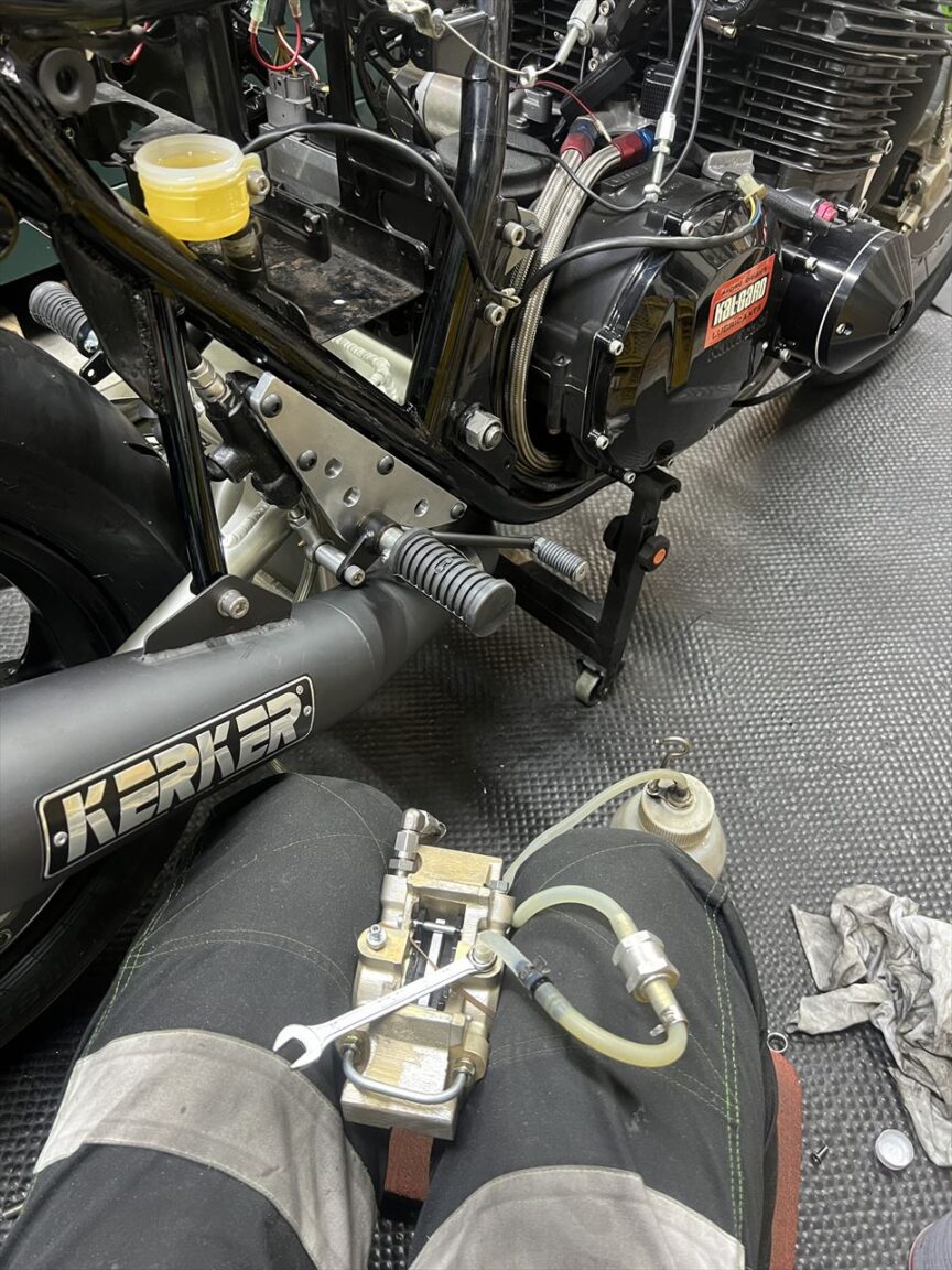 ブレーキホースも既存の物が使えました。配管してフルードを入れ真空引きします。