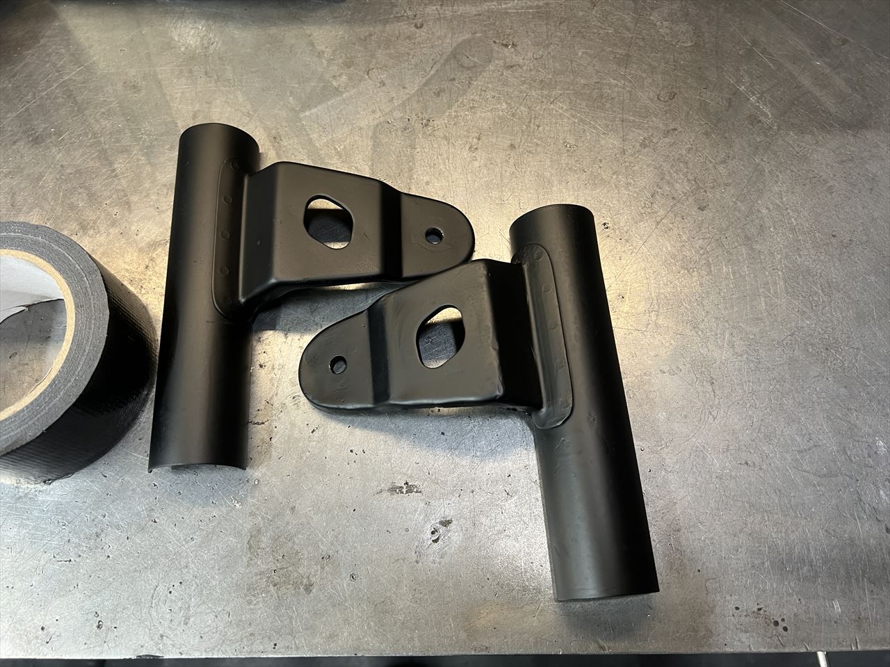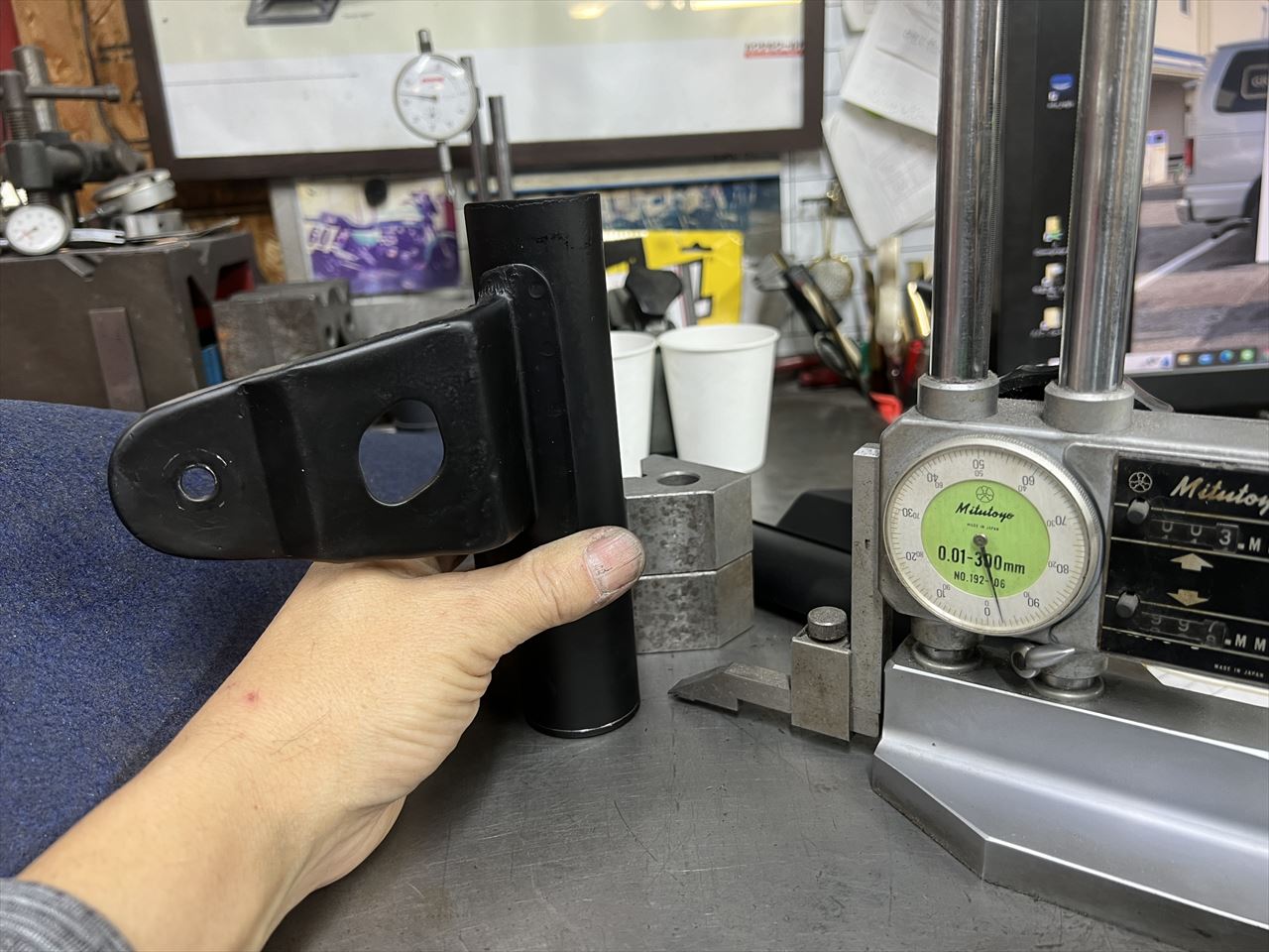 ヘッドライトステーをワークスS1仕様に改造します。パイプ部分の中央にケガキ線を入れます。