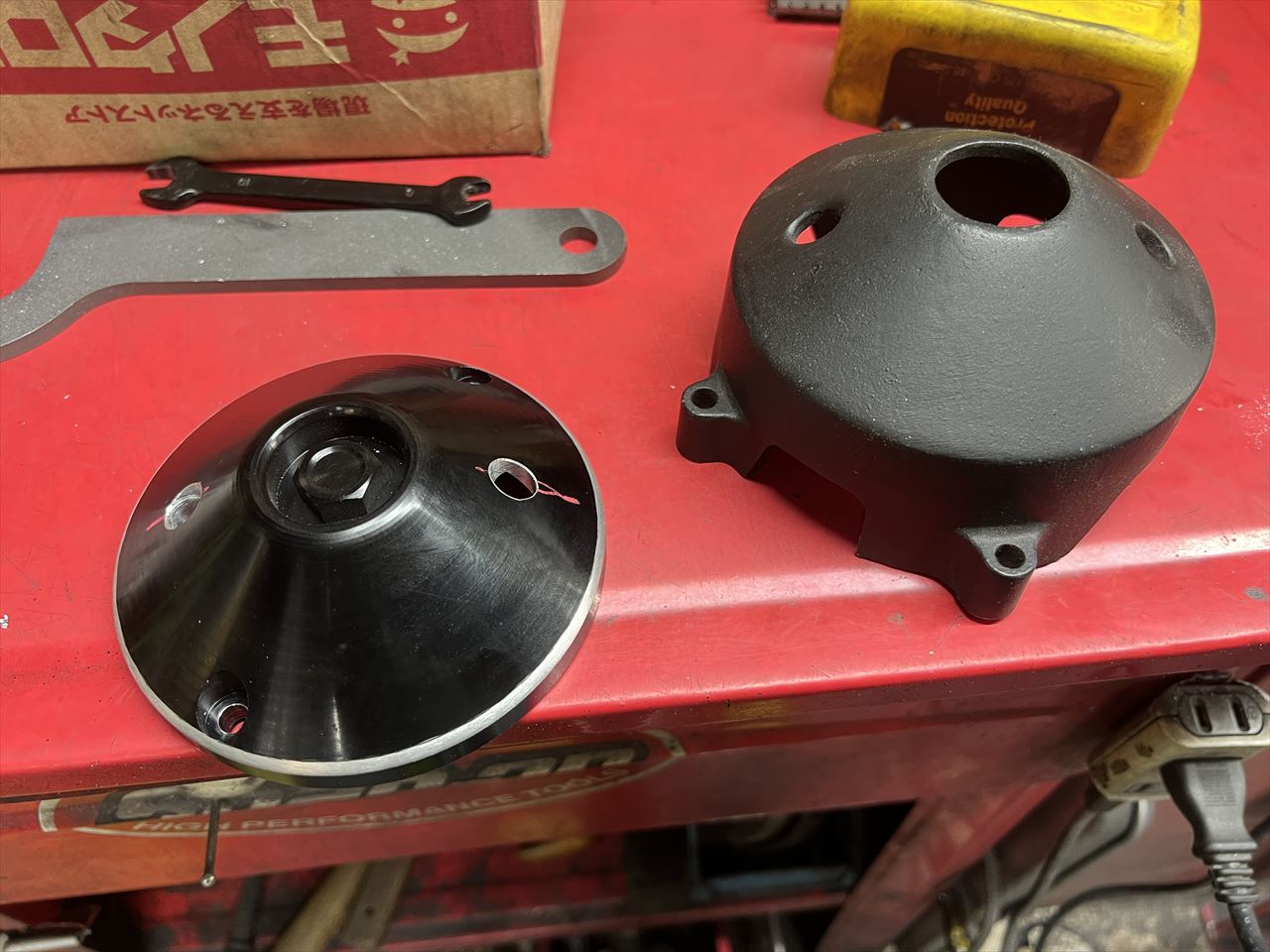 切り詰め加工したライトステーを塗装し、乾くまでにパルシングカバーを加工します。手前のS1部品の外観に寄せていきます。