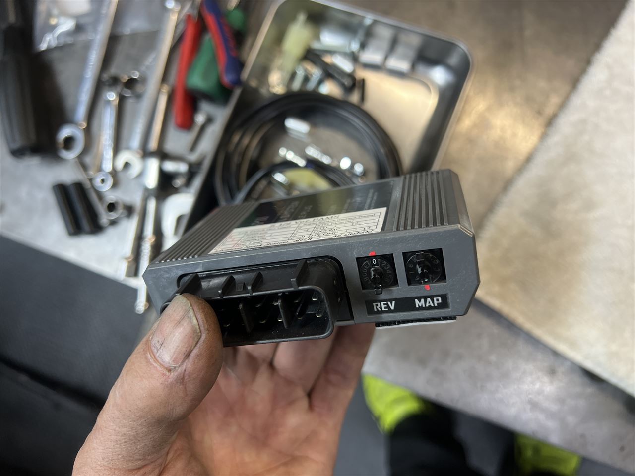 ウオタニSP2は予めREVダイヤルは1、点火時期ダイヤルは5にしておきます。
