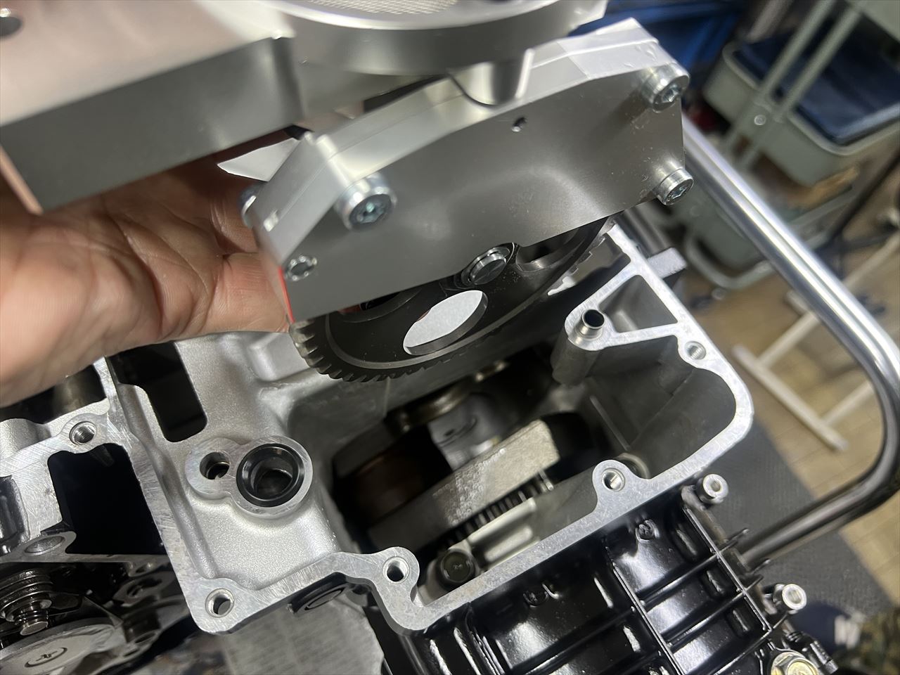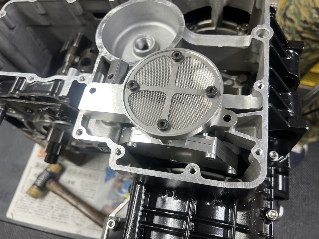 オイルポンプはハイプレッシャータイプのこちらを使います。トロコイド式の大容量ポンプなので、オイルクーラーに流れる流量が増えて、エンジン冷却効果が高まります。
