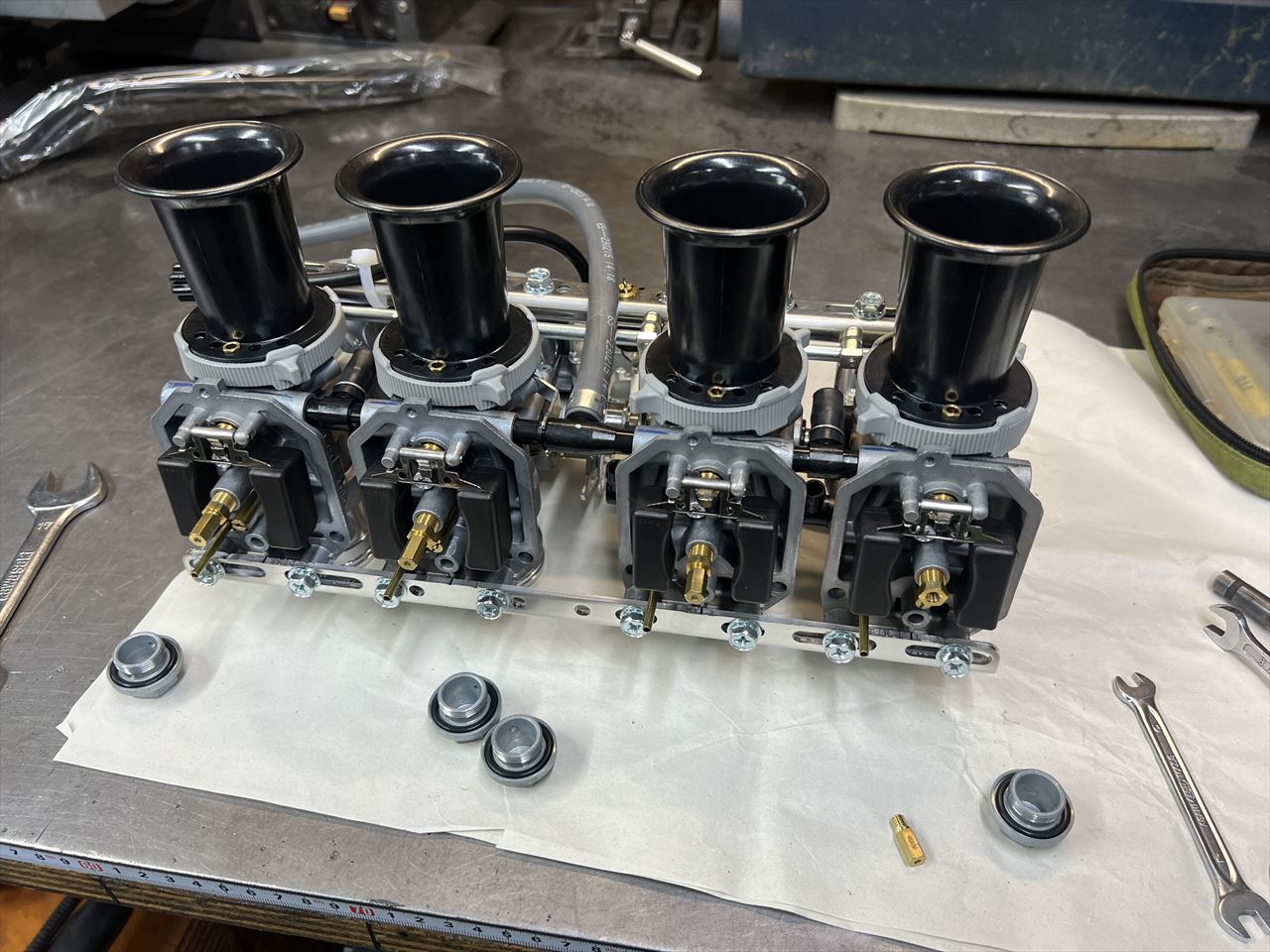 CRキャブは分解してジェッティングを確認、メインジェットも一旦脱着しておき、セッティングの際に車載で作業し易いようにしておきます。