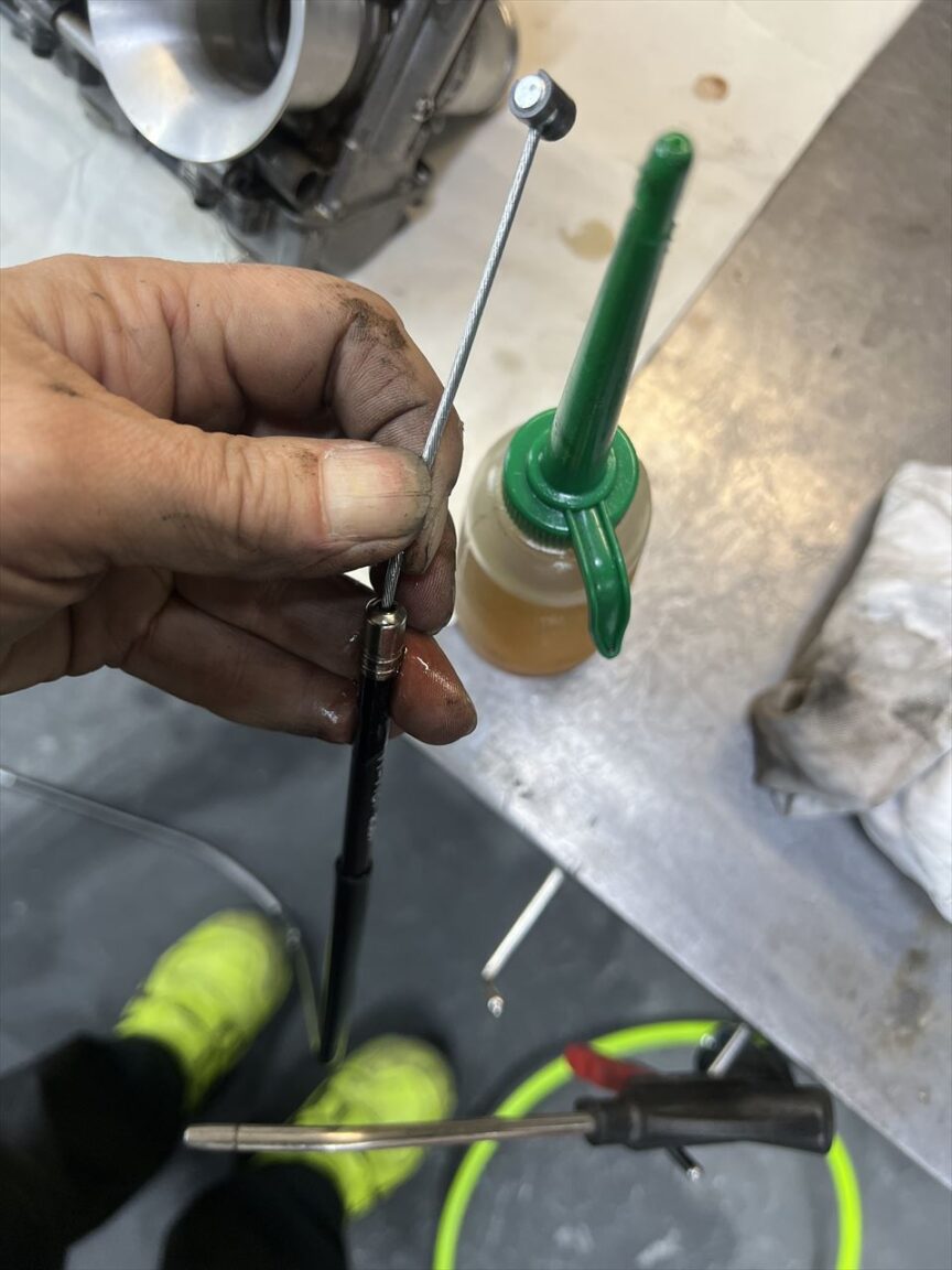 新しいクラッチケーブルには、潤滑用にエンジンオイルを10滴ほどケーブル内にしみこませます。