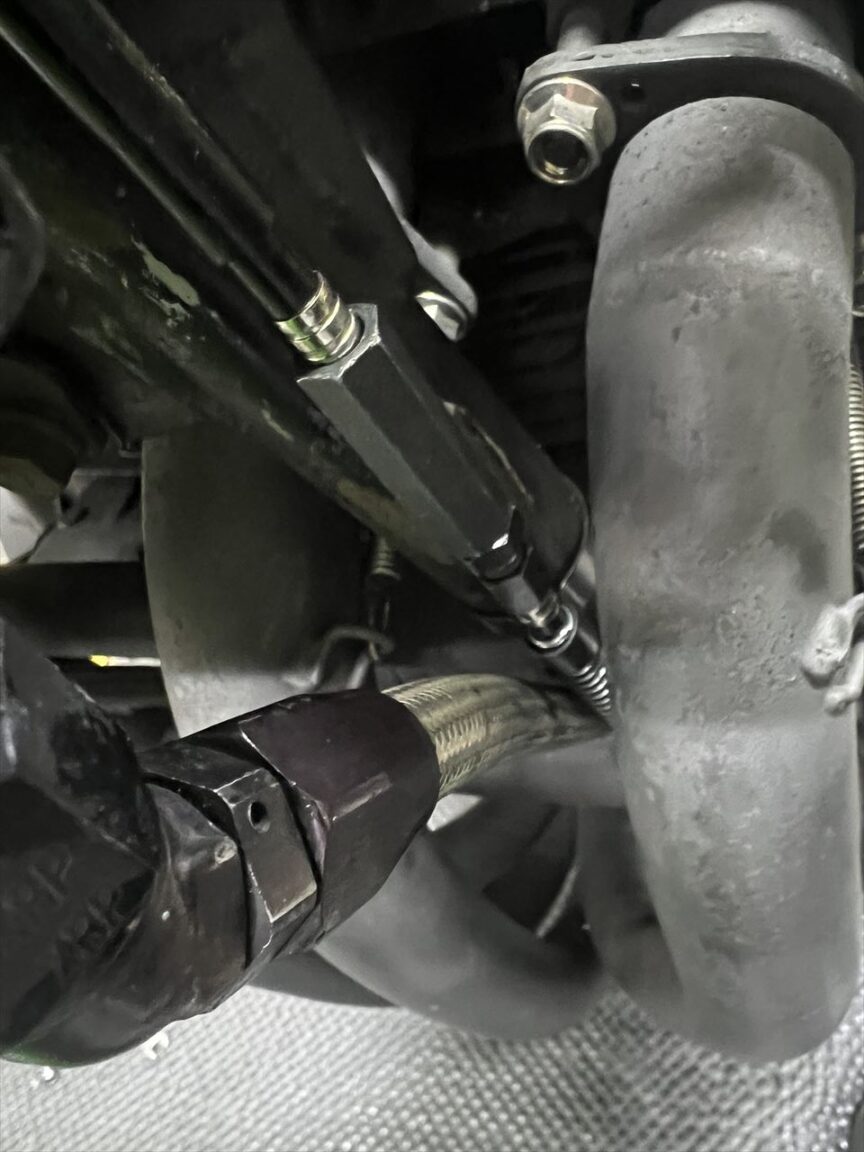 ケーブルはオイルクーラーコアに削られないよう、タイラップで後方から支えておきます。