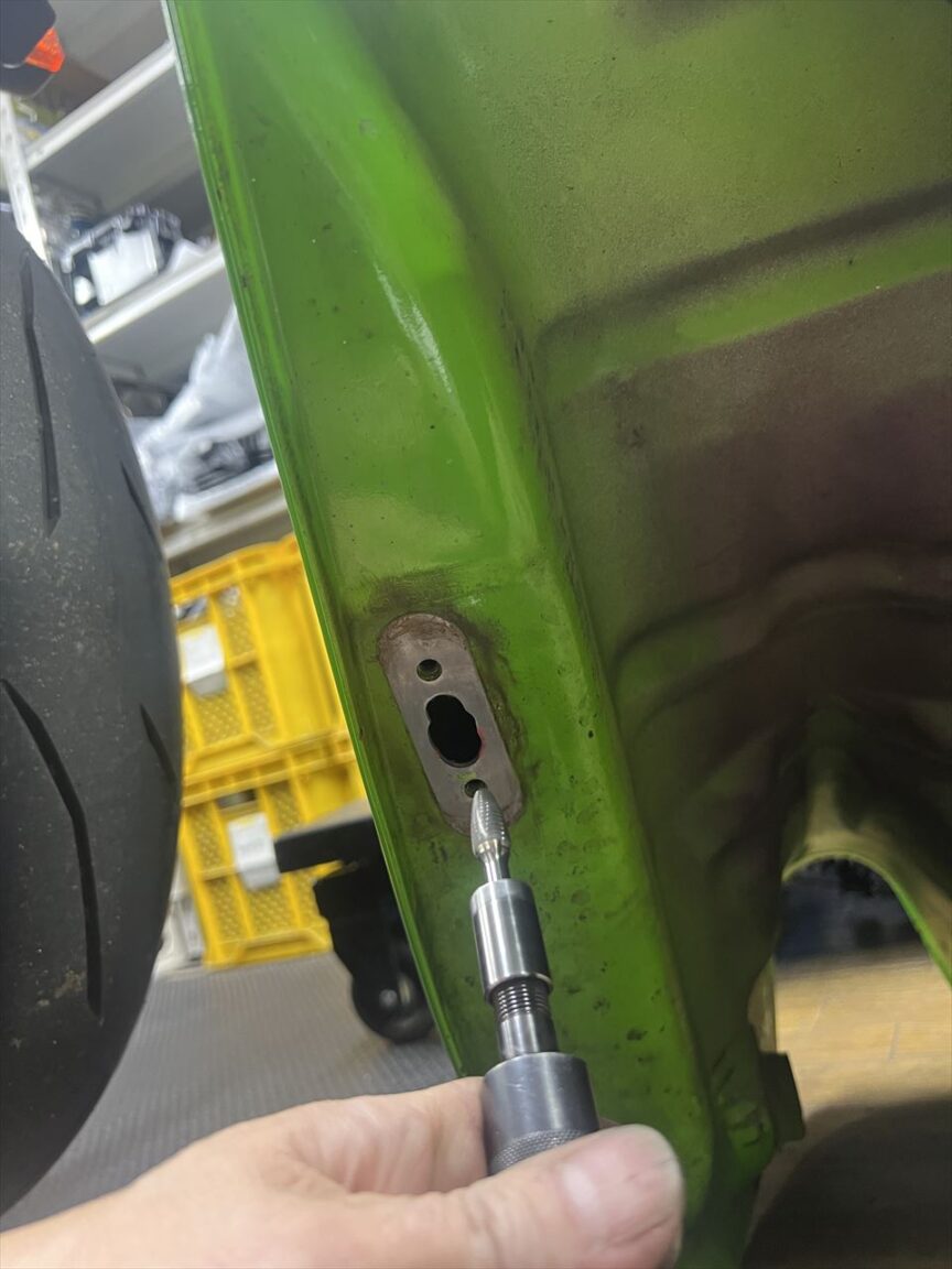 コックは3/8インチなので、タンクの穴も新たな位置を拡大します。