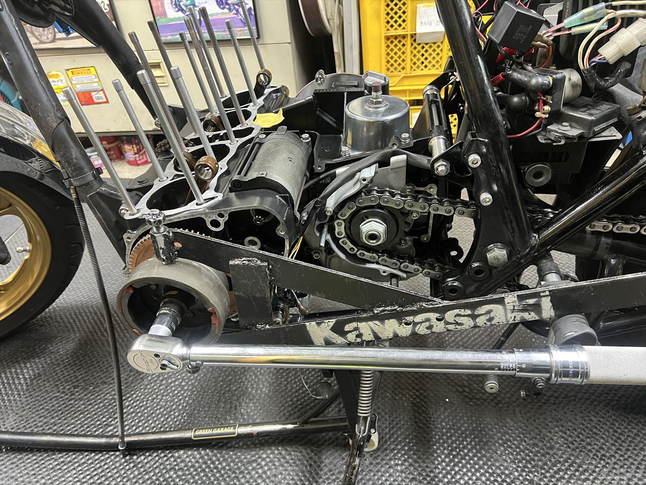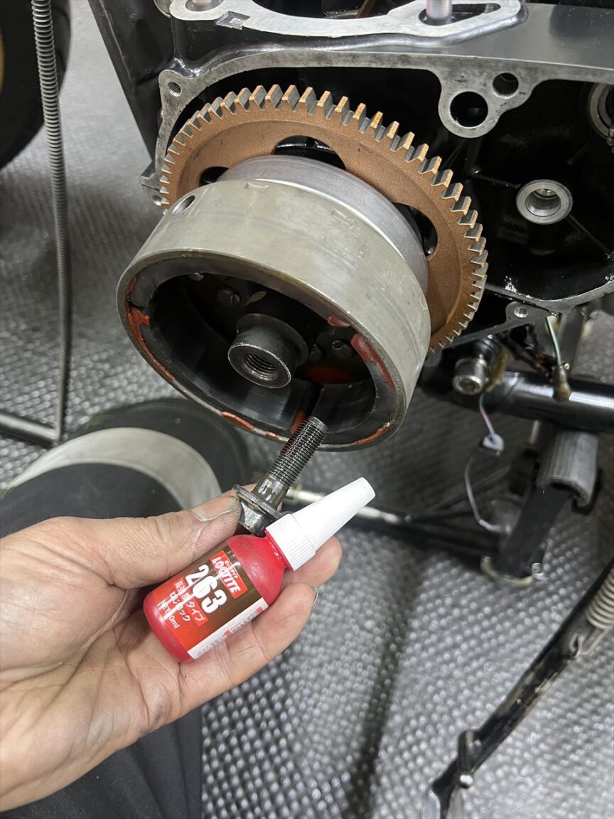 ジェネレーターローターのボルトは、ネジロックを塗布して組み付けます。