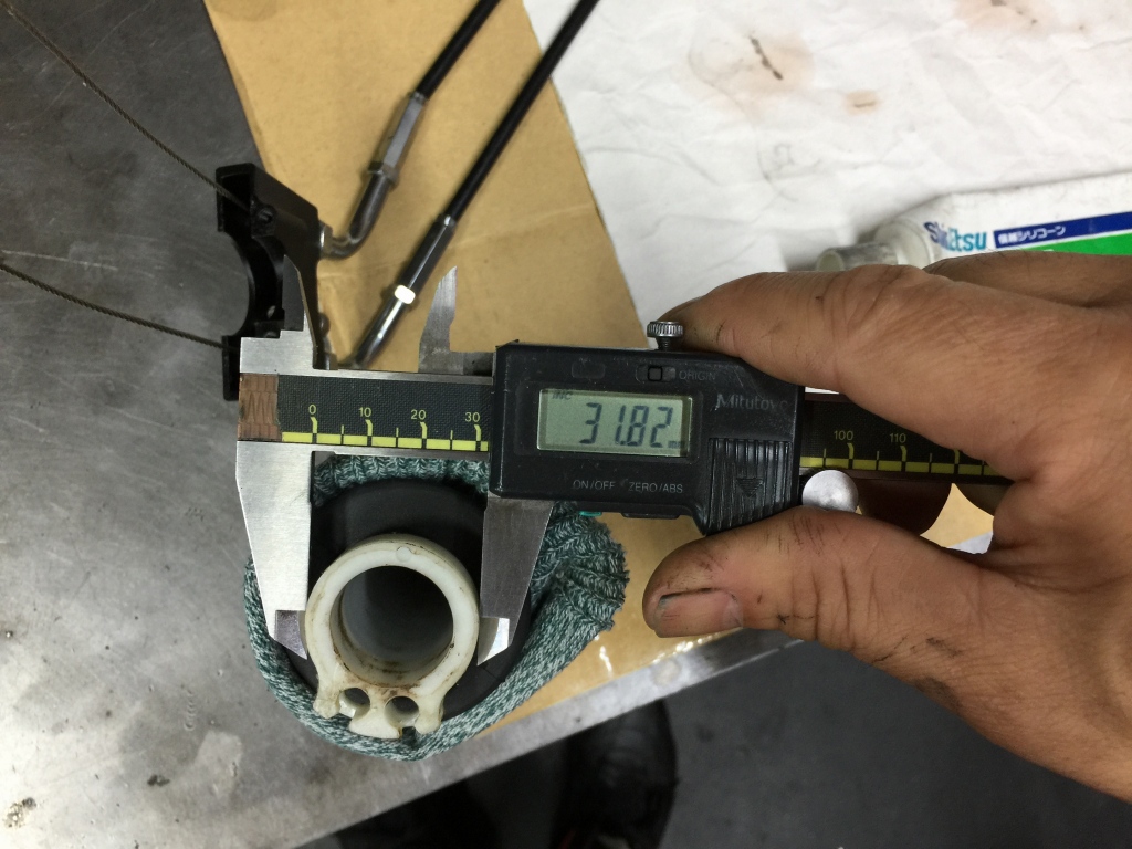 スロットルは樹脂製のφ32ミリが付いていました。だいぶ小径で軽くする方向ですね。