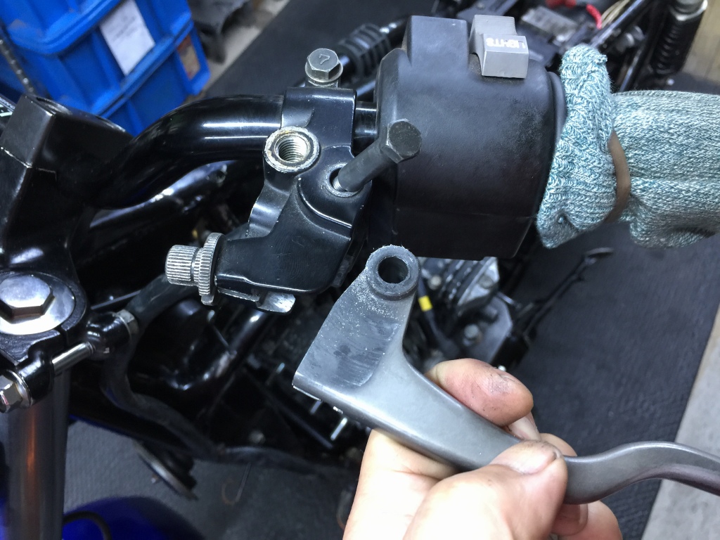 クラッチレバーの軸もグリスで潤滑しておきます。