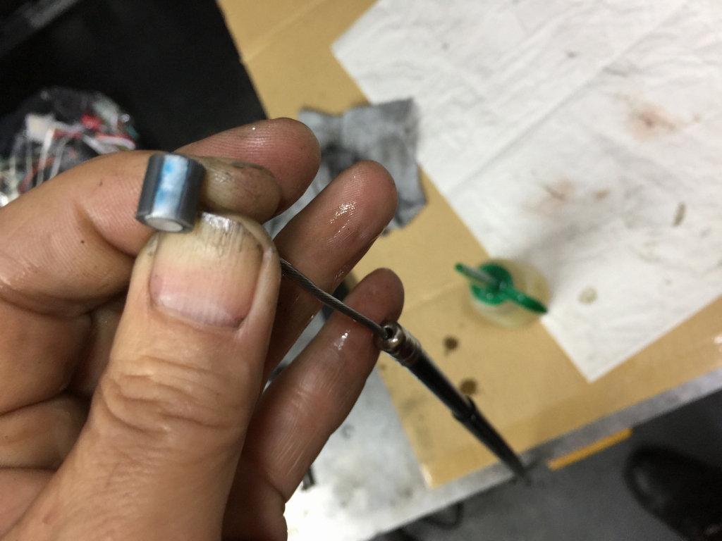 新品交換済みのクラッチケーブルも、インナーケーブルの隙間にエンジンオイルを数滴たらして潤滑しておきます。