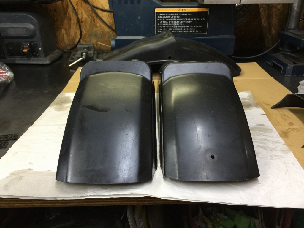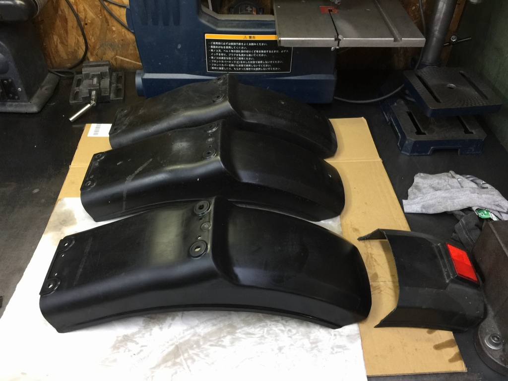 一番手前がカットしたものです。奥は純正のショートフェンダーです。