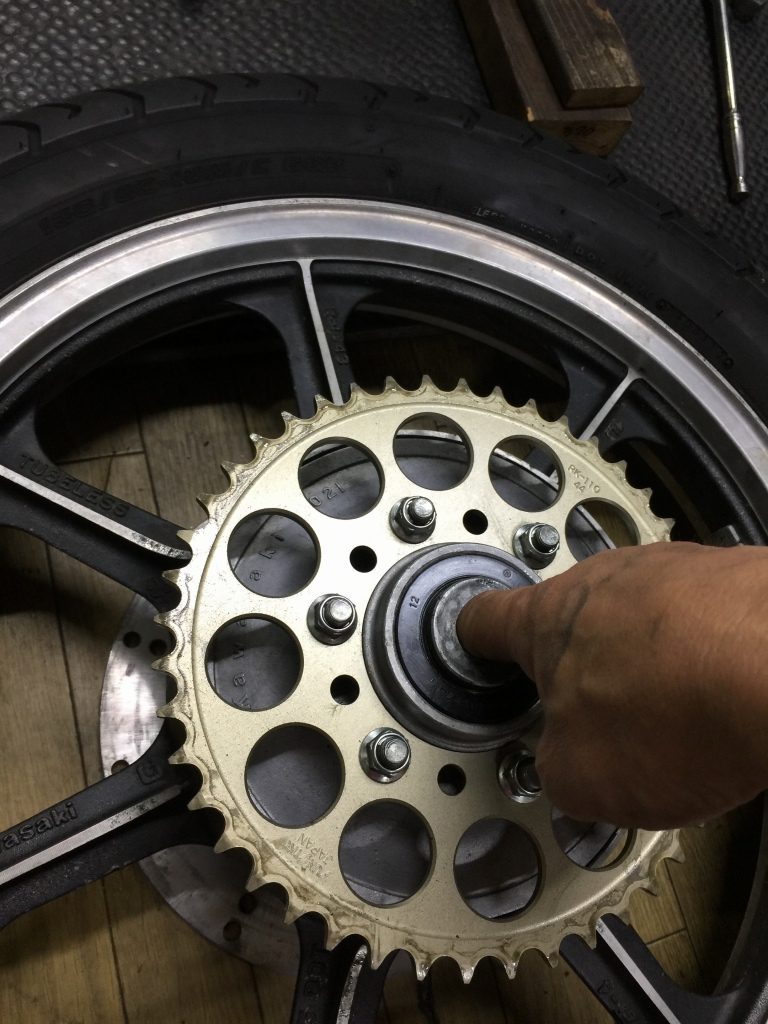 続いて、リヤホイールを外します。