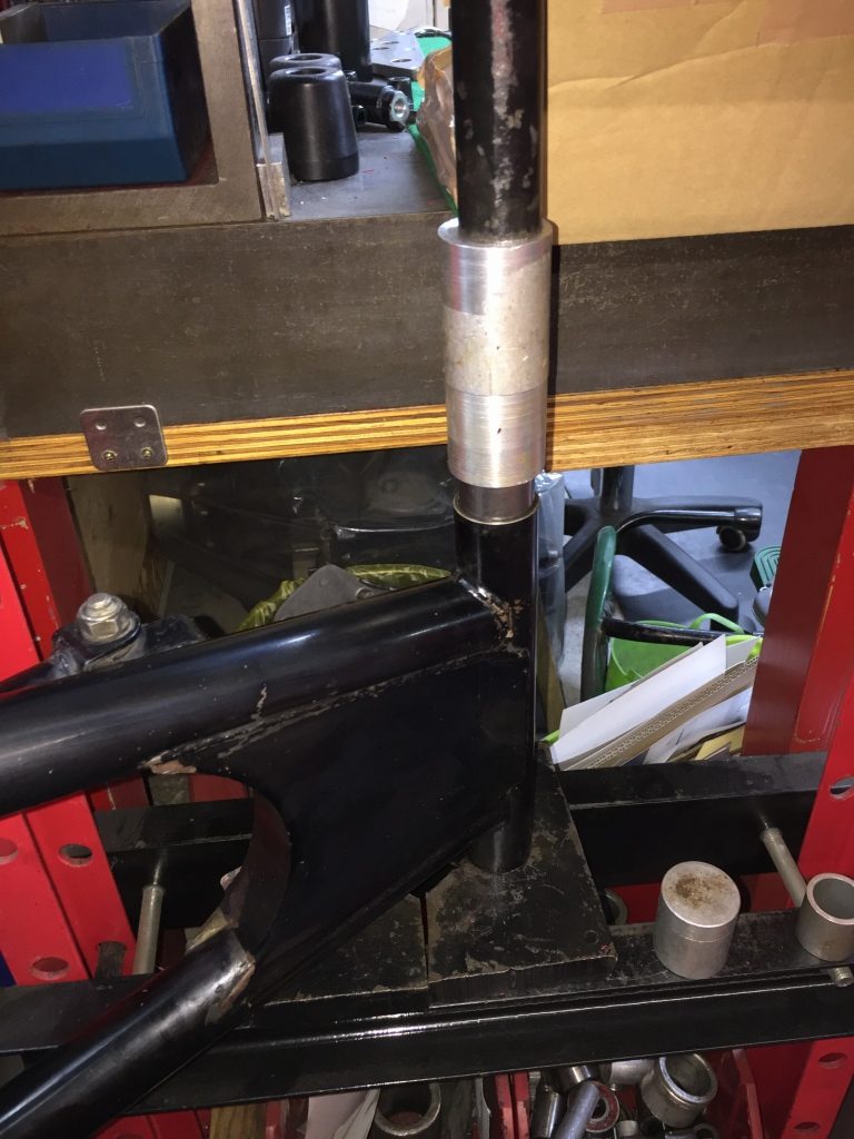 ベアリングを圧入中。
