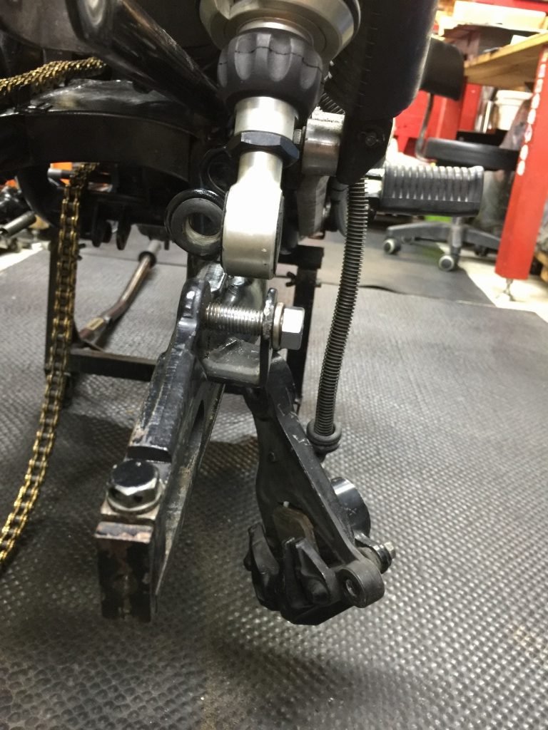 スイングアームを車両に取り付けます。