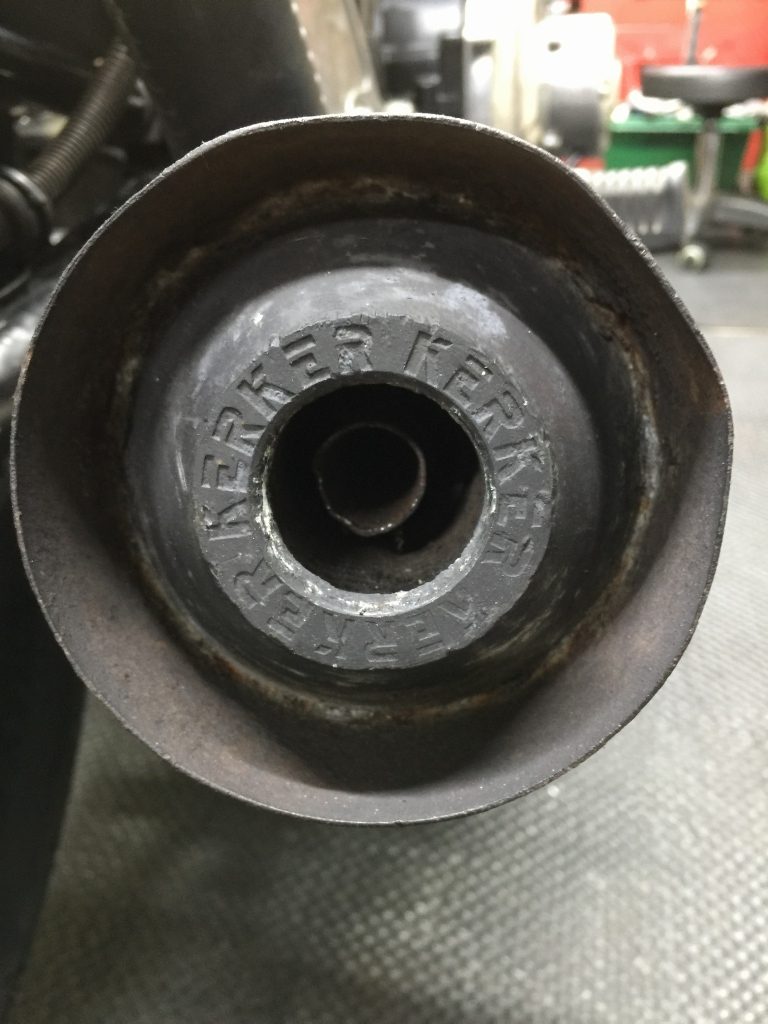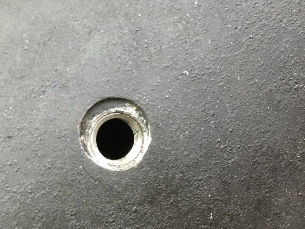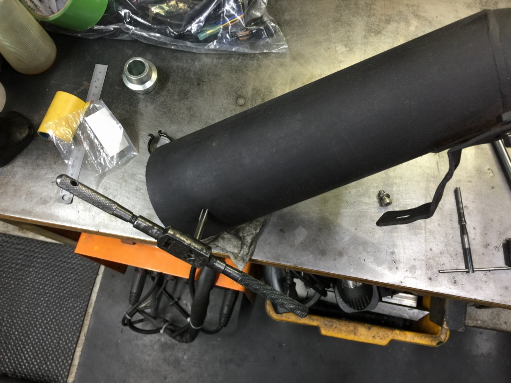 マフラーを付けようと点検すると、バッフルのネジが無く、ネジ山も無くなっています。