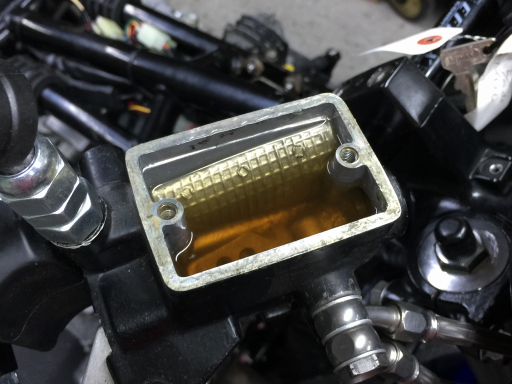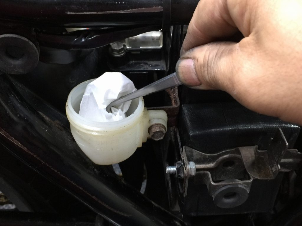 ブレーキ周りも点検。キャリパーとマスターは前後とも問題無いようなので、フルードのみ交換しておきます。