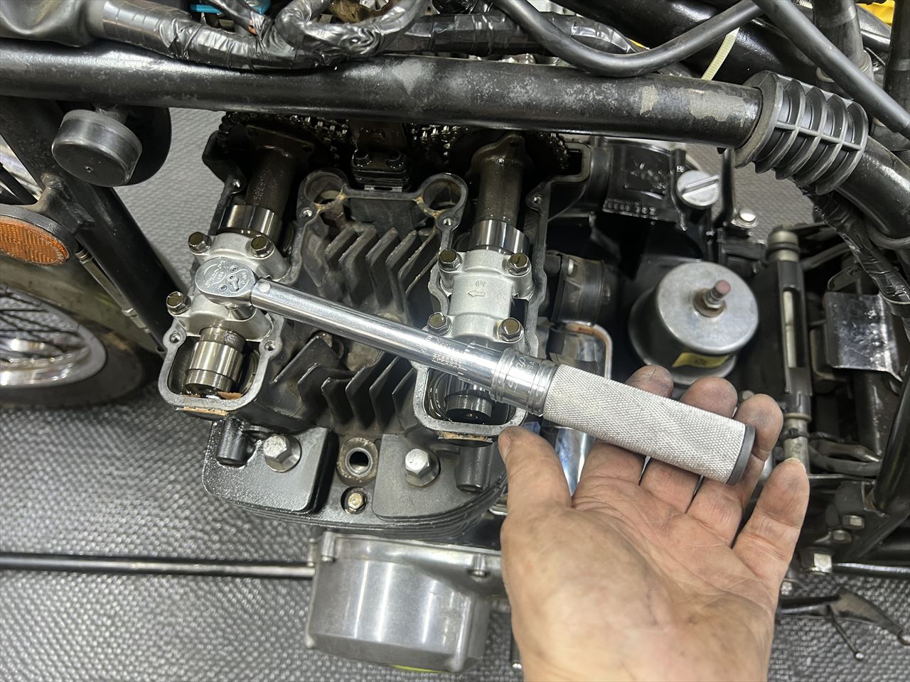 ついでにシリンダーヘッドのM6ネジのトルクもチェックします。こちらはやや締まりました。