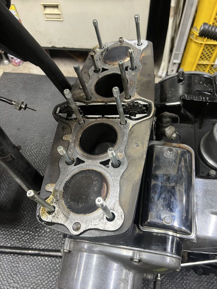ヘッドを外します。ヘッドガスケットはノーマルですね。