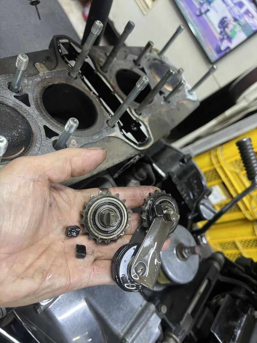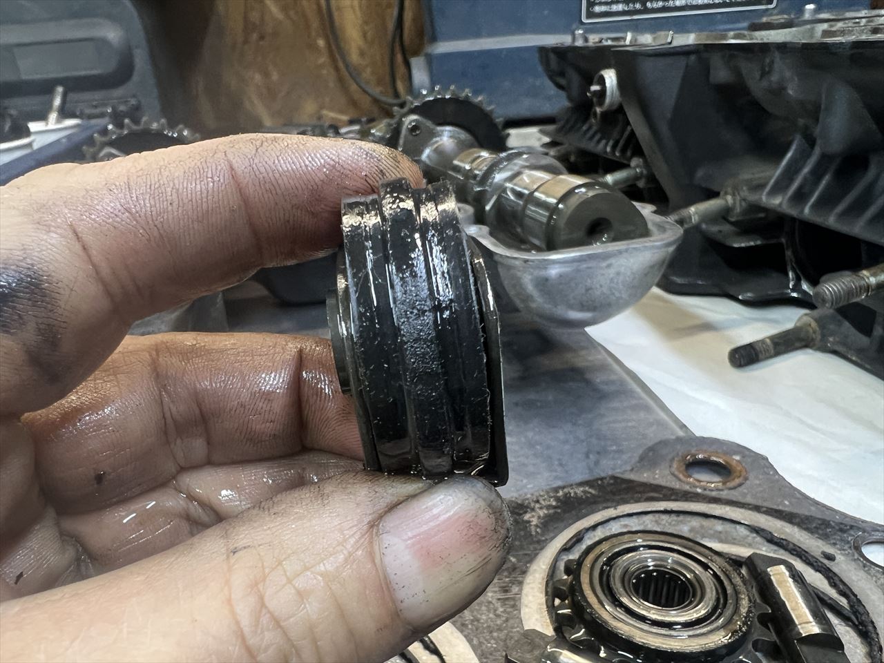 カムチェーンローラー類も、ダンパーラバーの剥離など無く良好です。