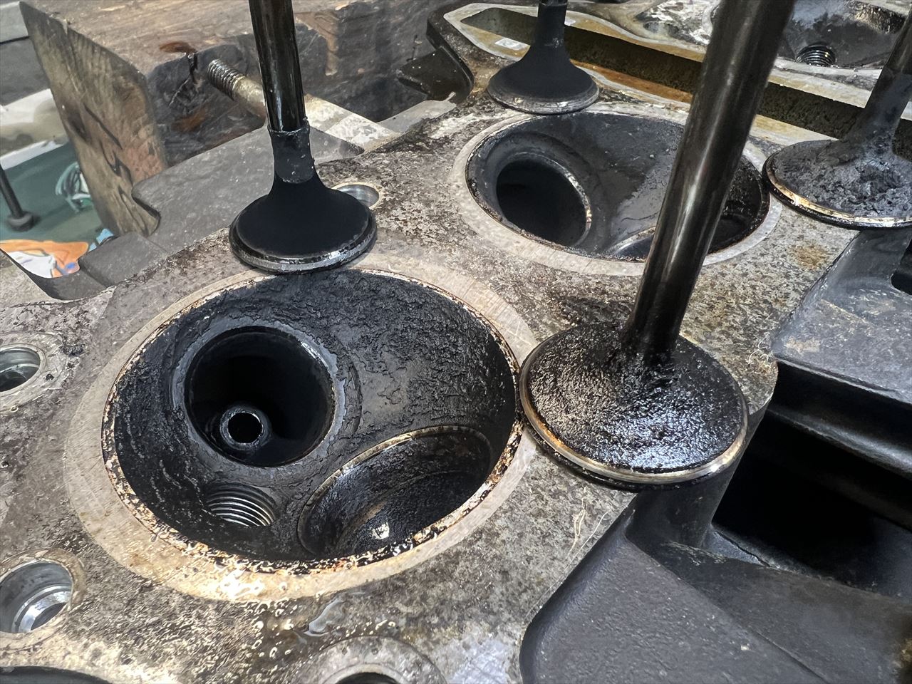 バルブの傘のカーボンも、年式の割には少ない方でしょう。このあと洗浄してから詳細に点検します。