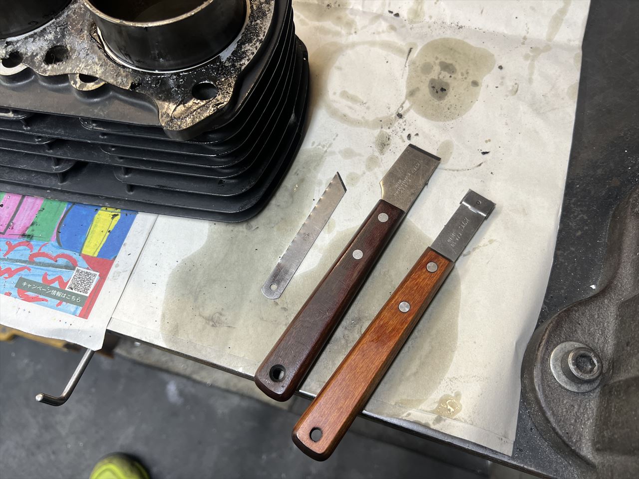 ガスケット剥がしに使うスクレッパーは通常こちらの3本です。