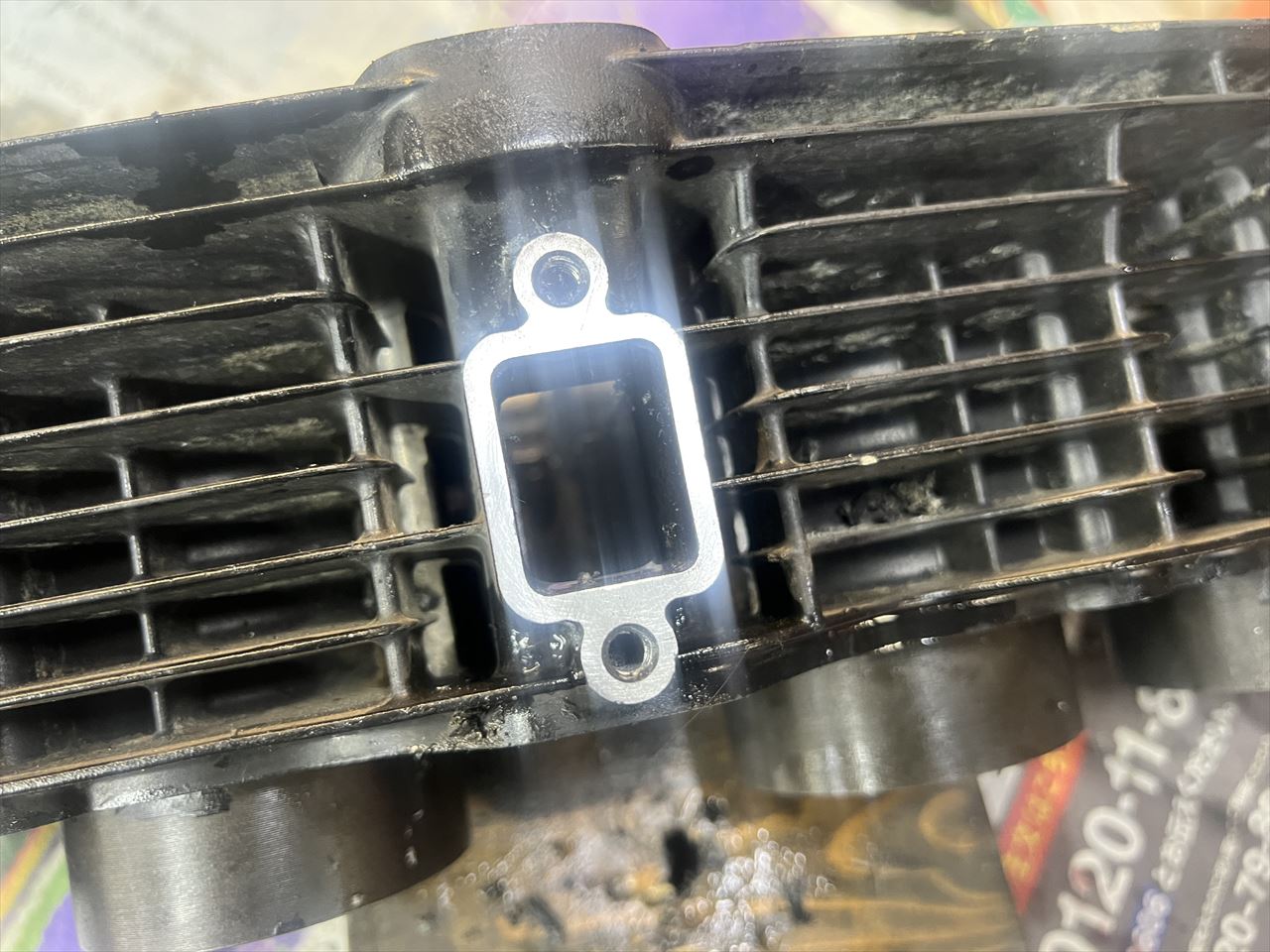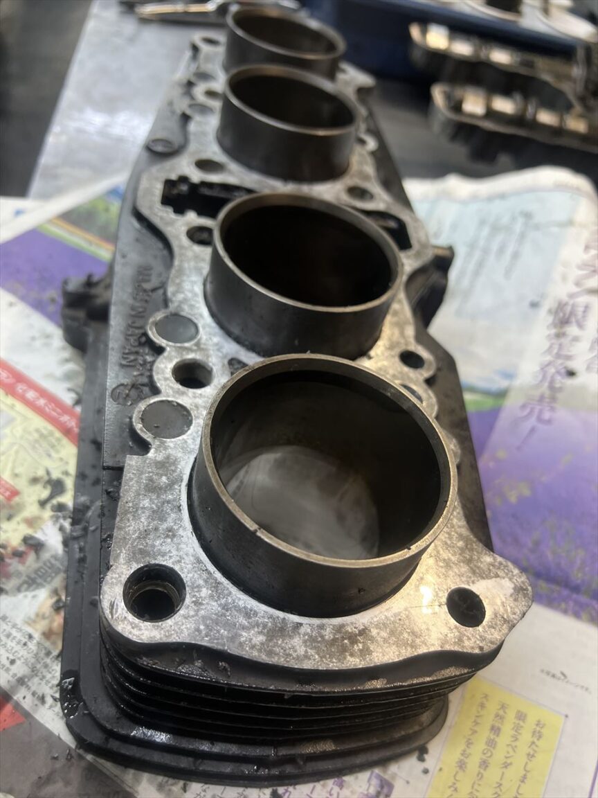 ガスケットを剥がしてオイルストーンで仕上げるとこんな感じです。