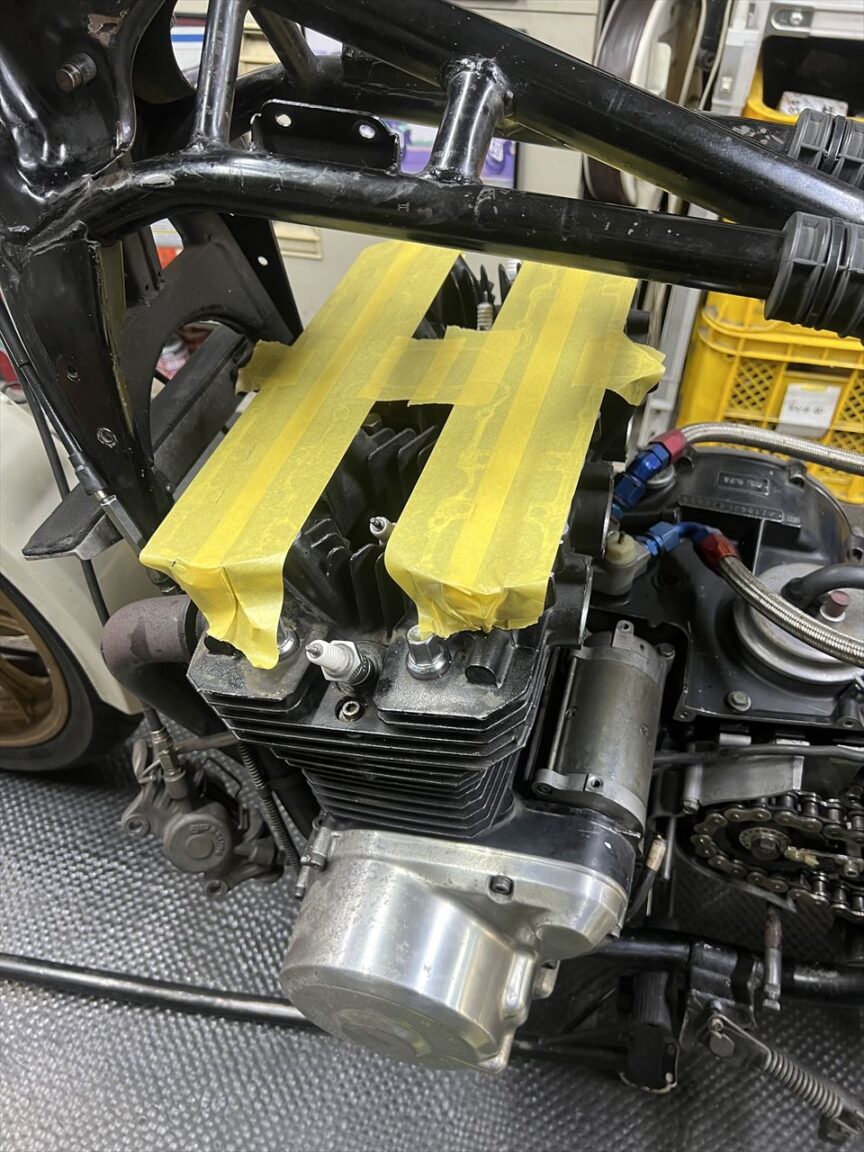 カムプラグのところのヘッド側雌ネジは、欠けたところも含め4ヶ所全てにヘリサートを入れて一応修復できました。但し、欠けたところは規定トルクまでは掛けられませんが。それ以外にもカムホルダーネジのトルクも確認します。