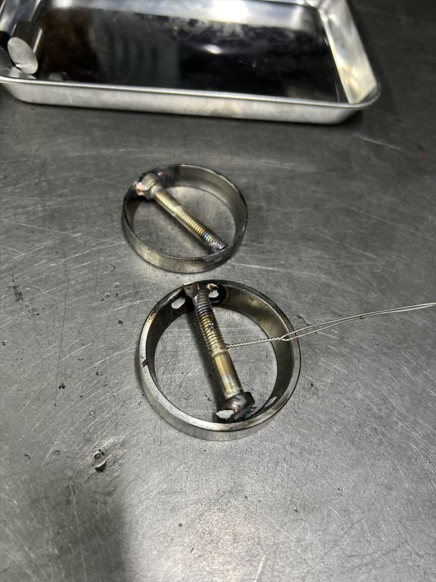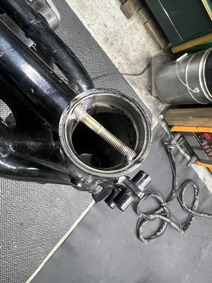テーパーローラーのアウターレースは引っかかりが無いので、ボルトを溶接し、それをたたいてレースを抜きます。