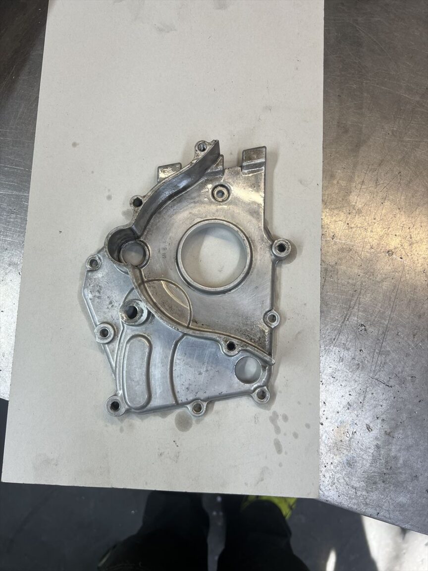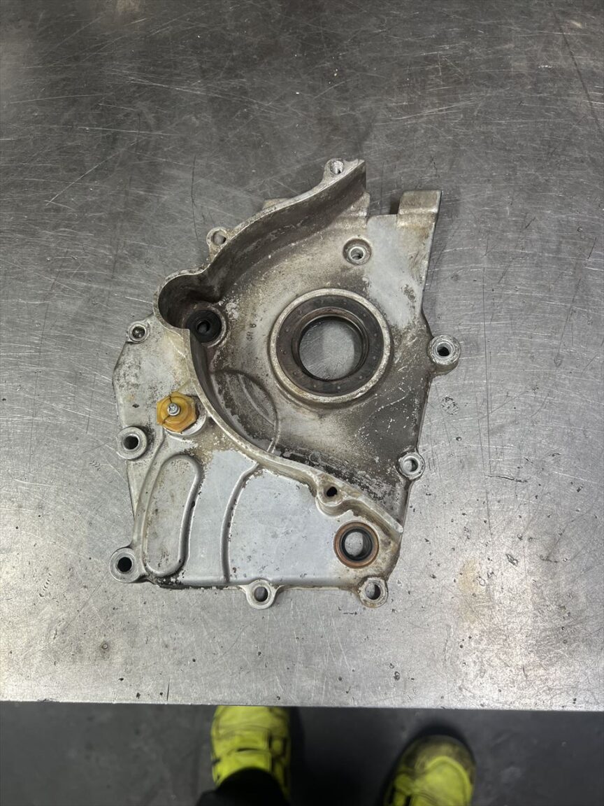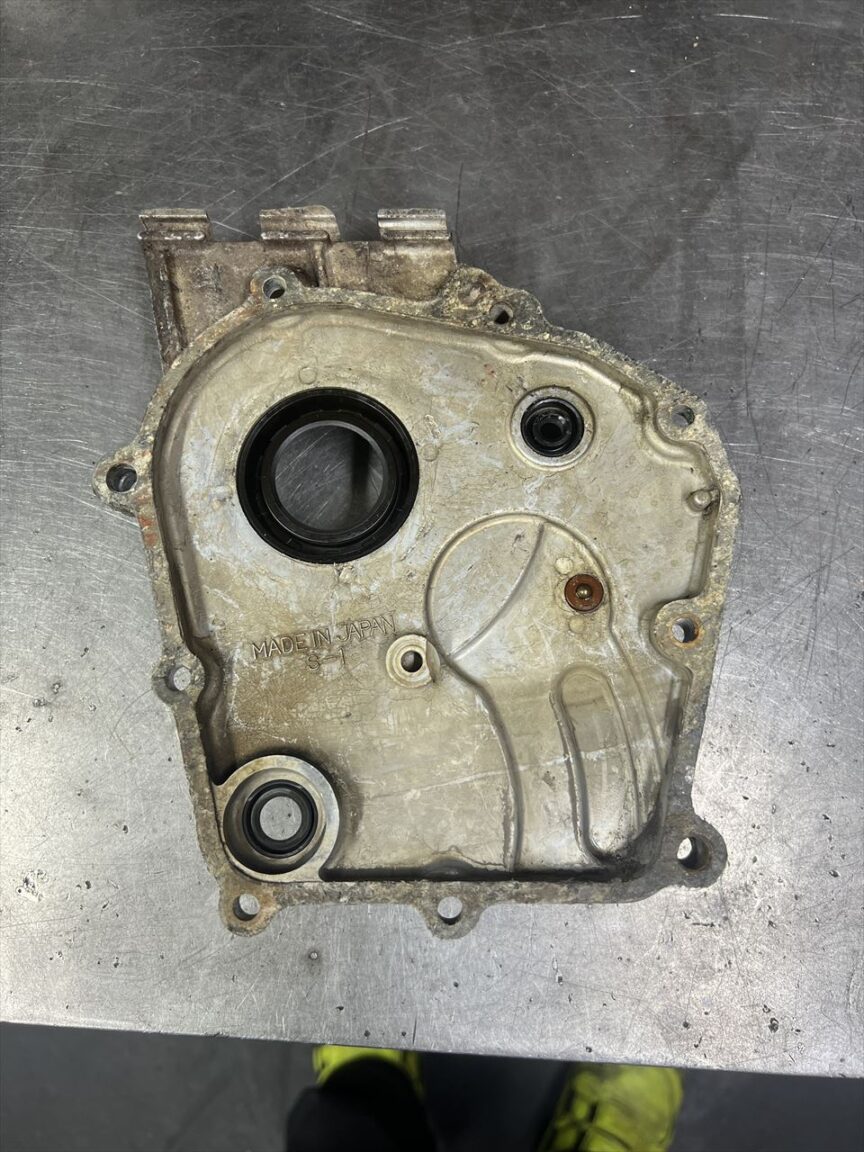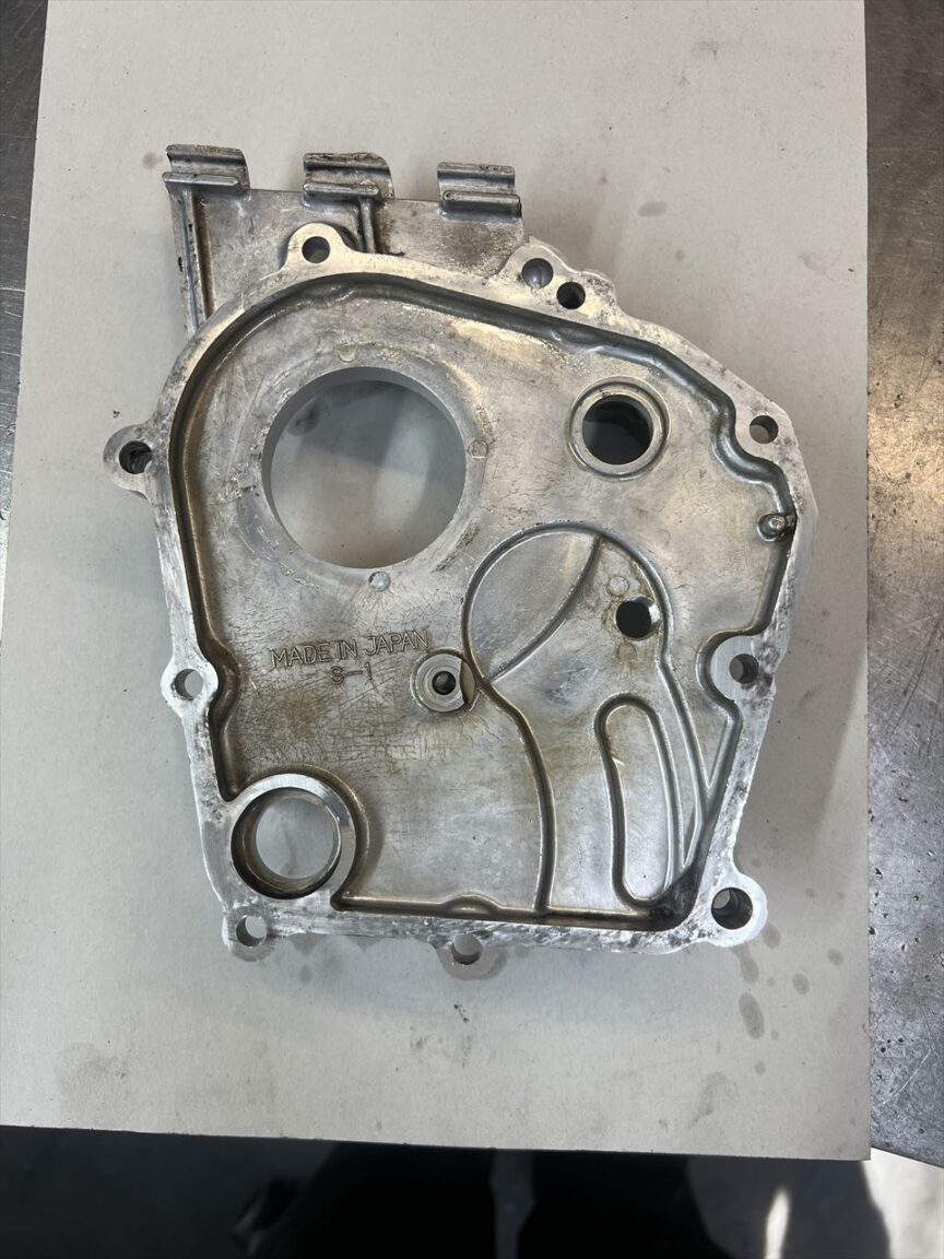 縁がカットされていたミッションカバーも、未加工品を入手したのでこちらに交換します。入庫時はこんな感じ。