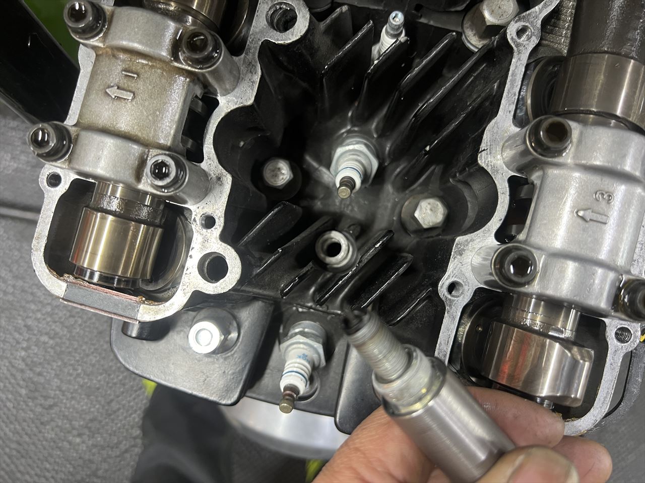 プラグはメイン、サブとも10番が使われています。今後ストリート使用が主なので、熱価は8番に変更します。サブの方はリーチの短いものに変更し、スペーサーを無くそうと思います。