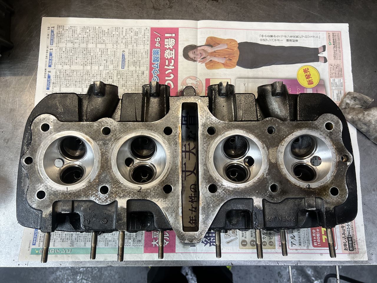 ヘッドの内燃機加工が終了して戻ってきました。新品バルブに合わせシートカット、および最低限の面研をしています。