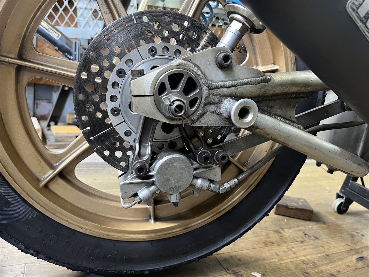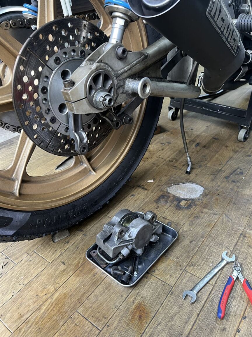 キャリパーを外して点検します。