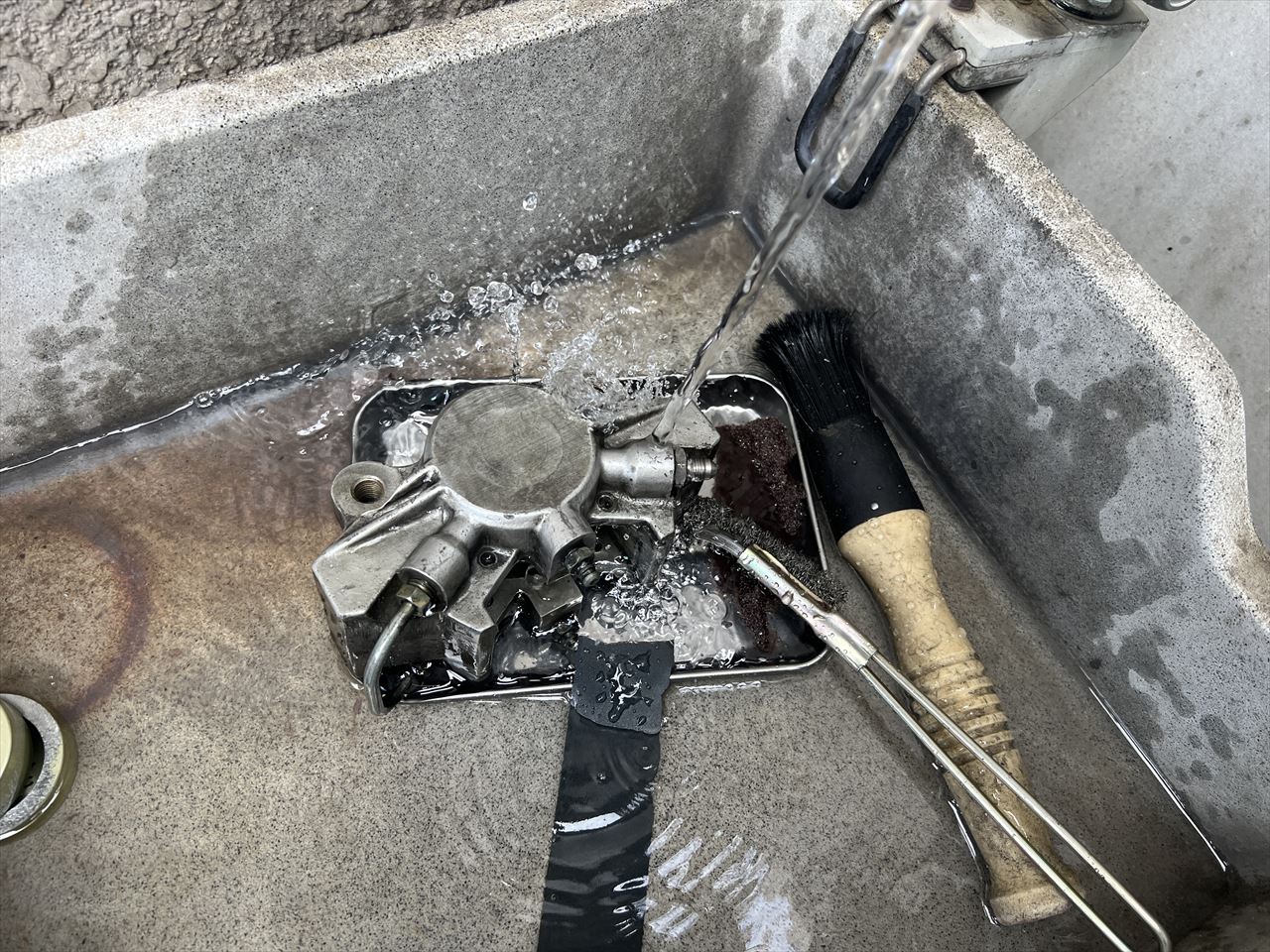 分解して水で洗浄します。