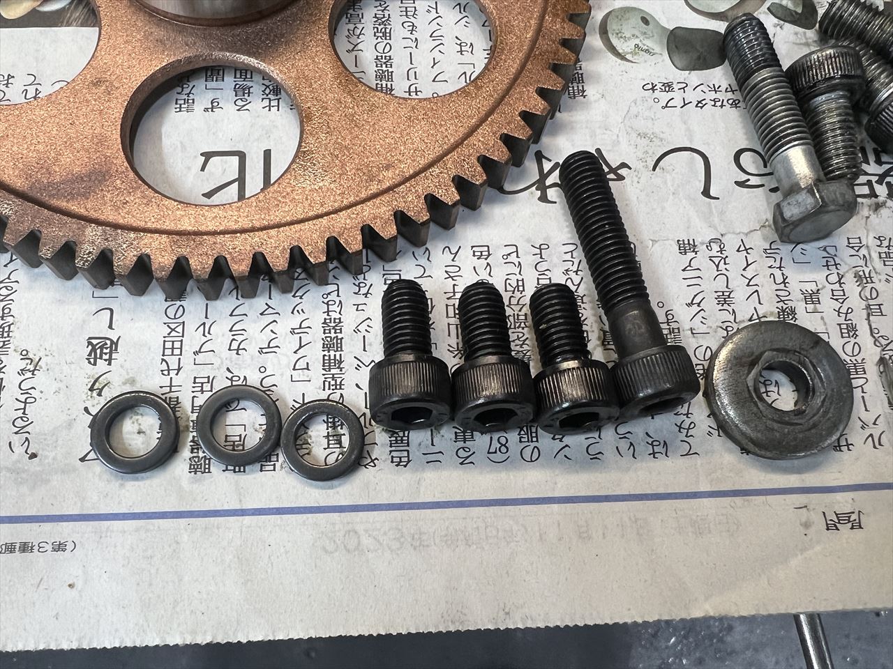 ワンウェイ取付のM8ボルトはかなりのトルクで締めるので新品交換します。合わせてマグネットローターの取付ボルトも強度の高いキャップボルトに変更します。
