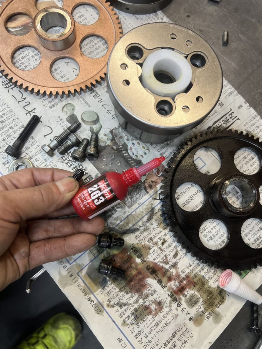 ボルトはロックタイトを塗布して規定トルクで締め付けます。