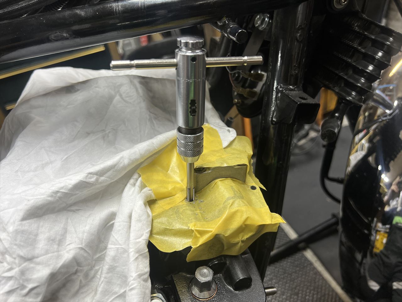 フロントスプロケも緩みやすいので、こちらは規定トルクより強めに締めます。